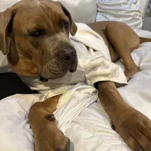 We love this hoodie! My pup has bad separation anxiety and this hoodie definitely makes her feel comfortable while i'm away. i realized she'd stop crying as much when put in her crate while im gone.