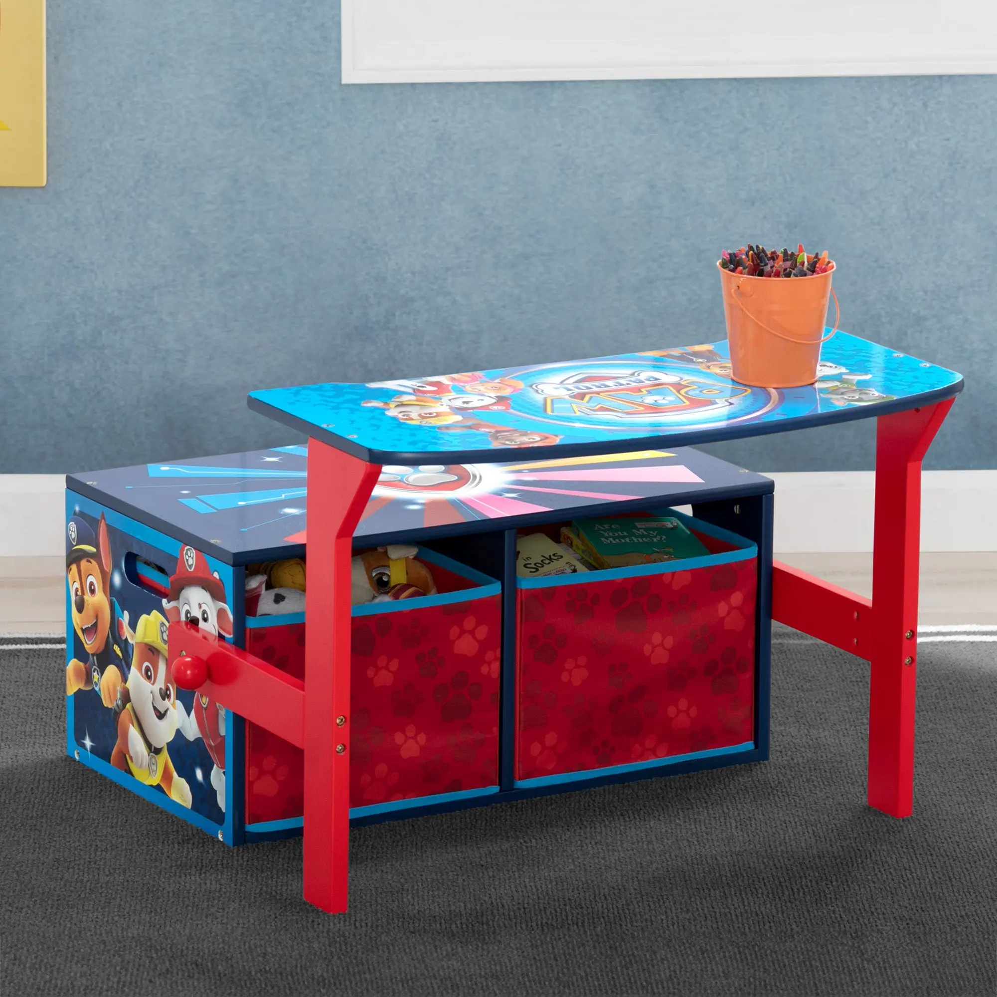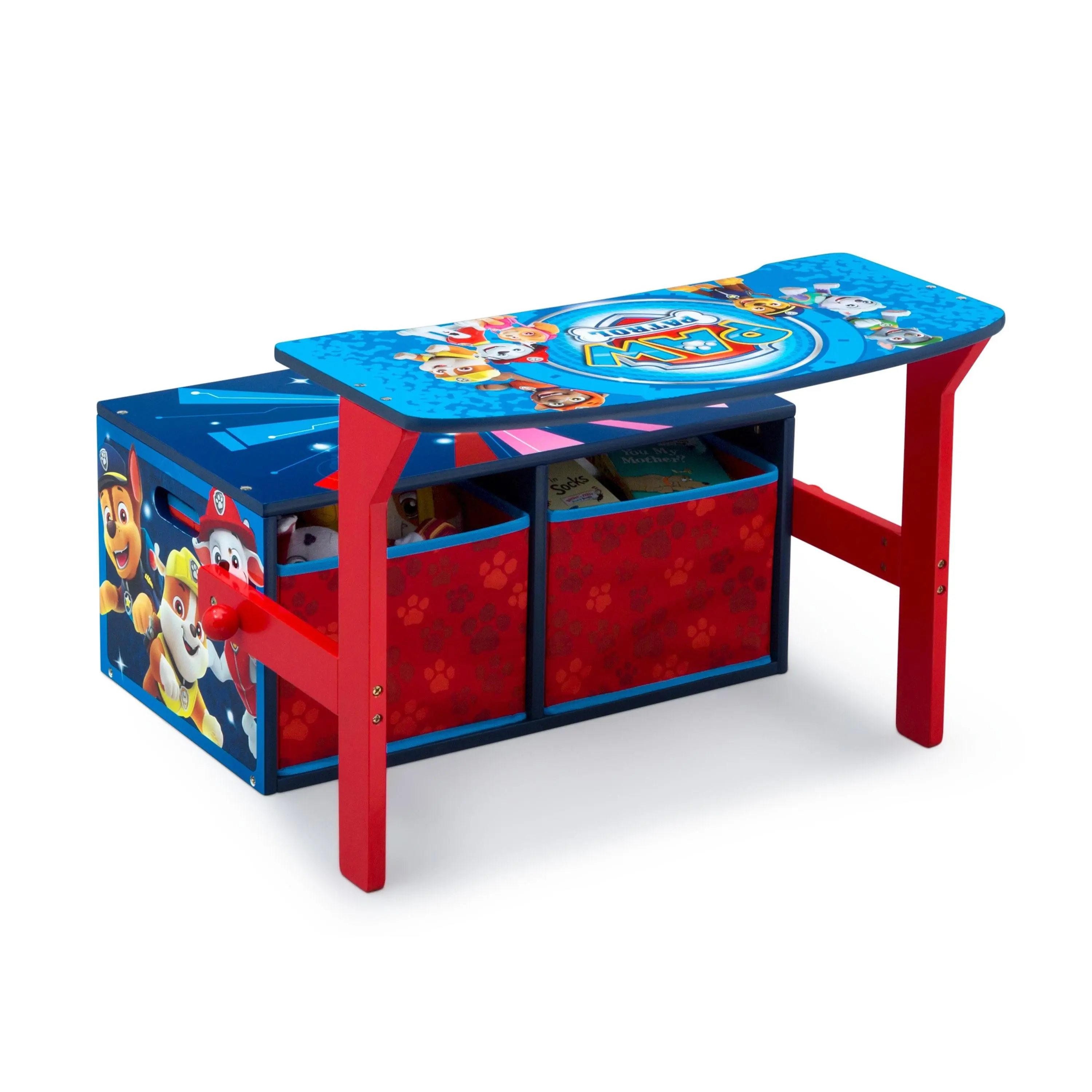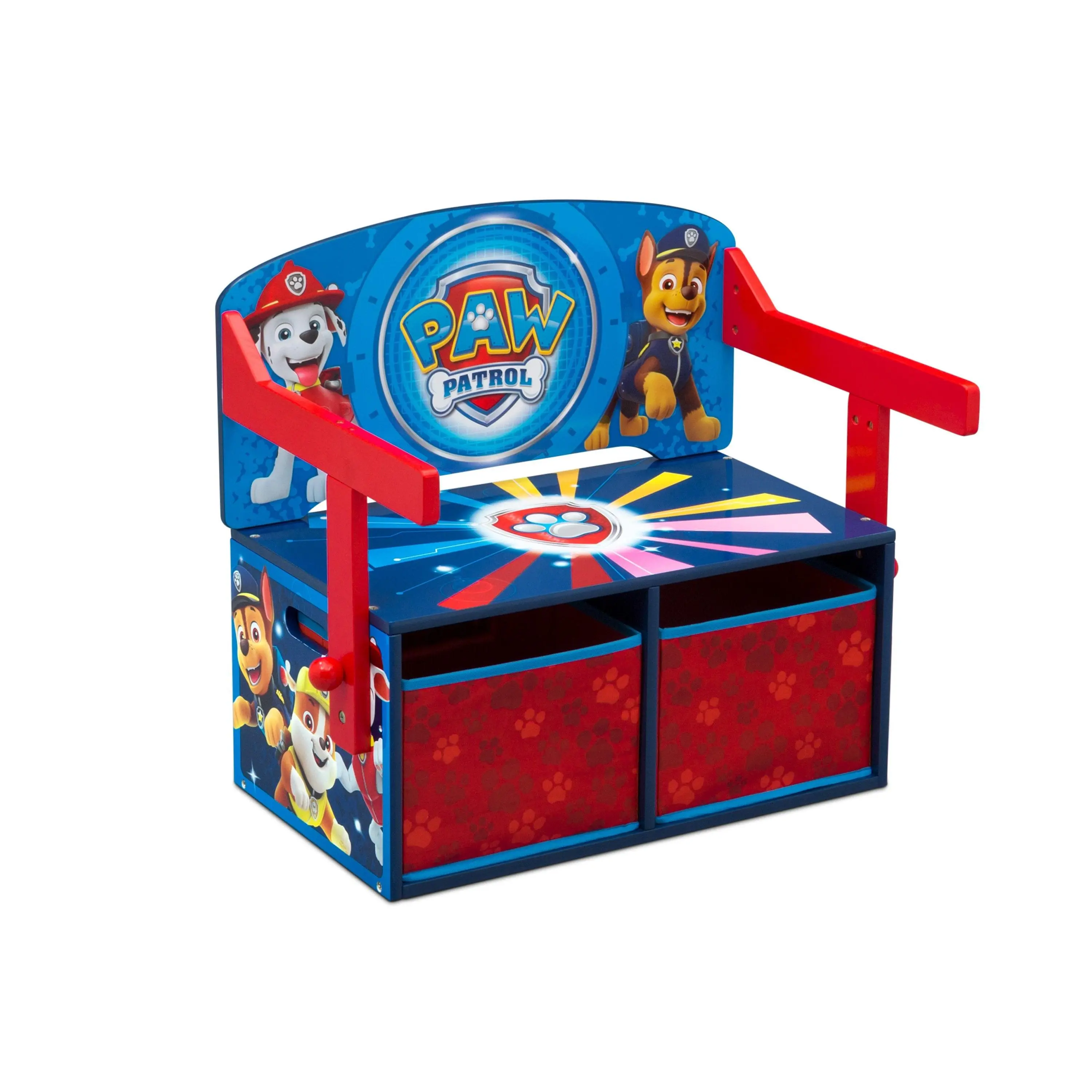 Bring home the magic of Adventure Bay with the PAW Patrol Activity Bench. It’s 2-in-1 design converts from a storage bench to a desk in seconds. An adorable addition to your child’s play space, this clever activity bench will have your child ready for thier next adventure when they see the colorful graphics of Marshall, Chase, and the rest of the PAW Patrol pups.
