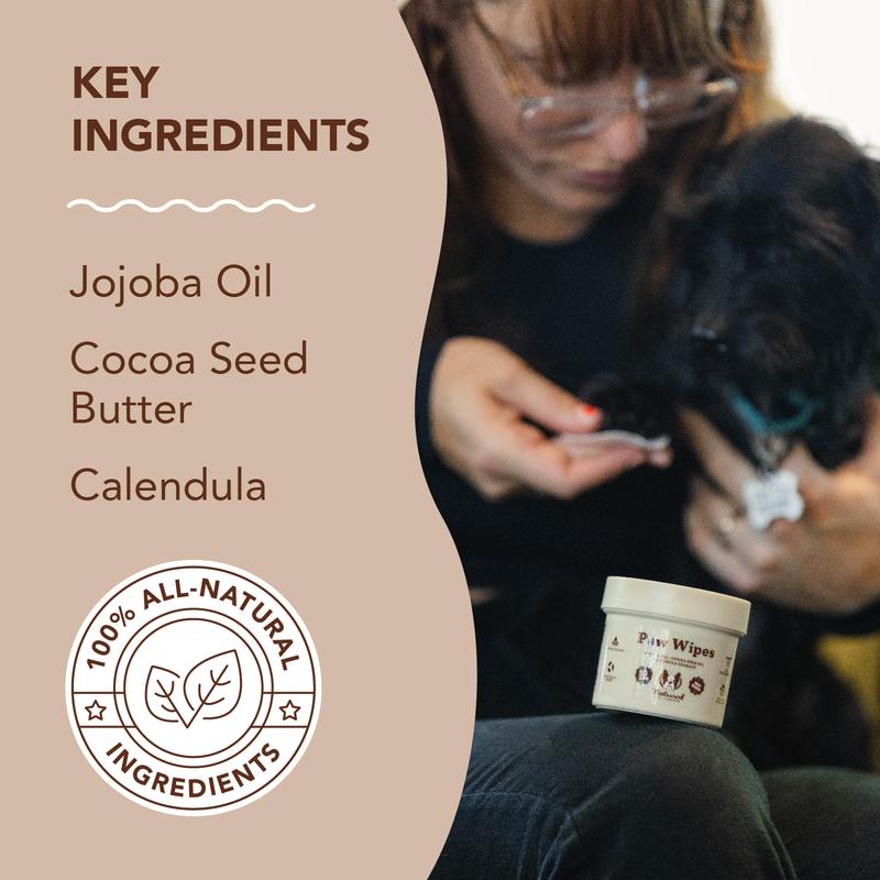 Our Paw Wipes feature Jojoba Oil, Cocoa Seed Butter, and Calendula to hydrate, soothe, and protect. Jojoba Oil provides deep moisture, Cocoa Butter heals and shields against damage, and Calendula calms irritation and speeds up recovery. Perfect for keeping your pup’s paws fresh, soft, and ready for their next adventure!