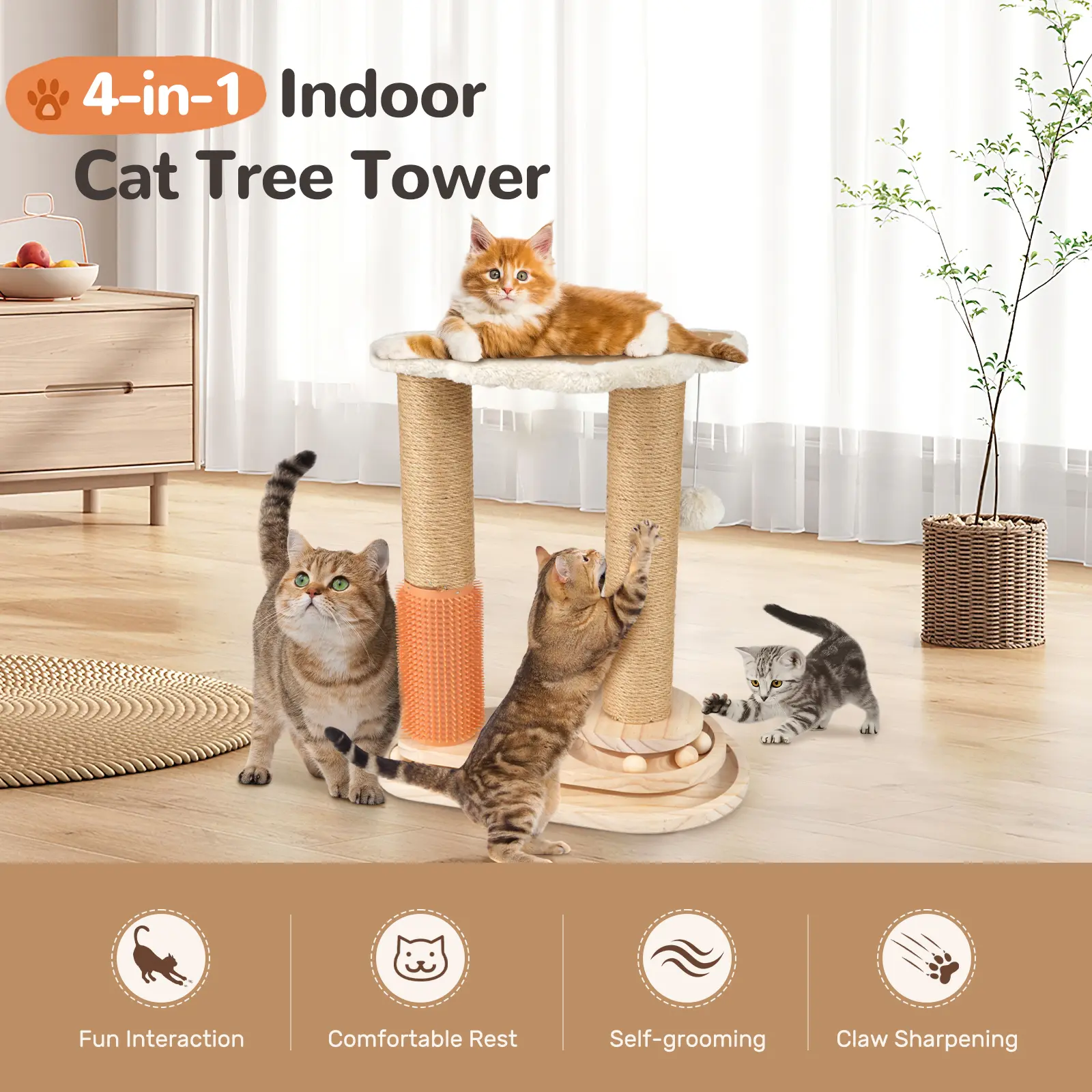 The Pawaboo Cat Tower is a cozy retreat for your indoor cat. It features a sisal scratching post and a cat self-groomer, ensuring your pet's comfort and grooming needs are met. The tower includes a cat ball track, adding an element of fun. Perfect for kittens, it measures 17.5 inches, making it ideal for small cats. This multi-functional interactive toy keeps your cat entertained and active.