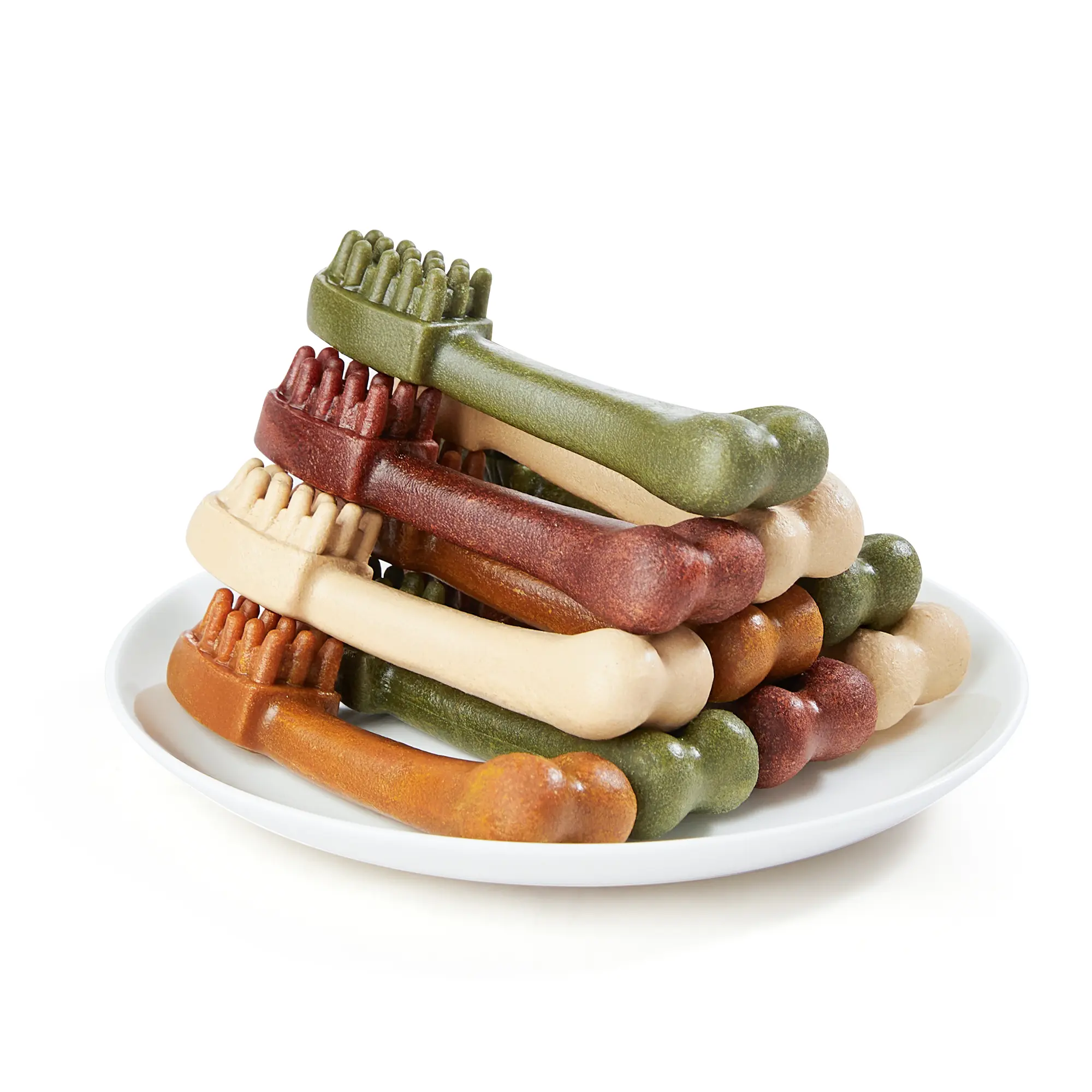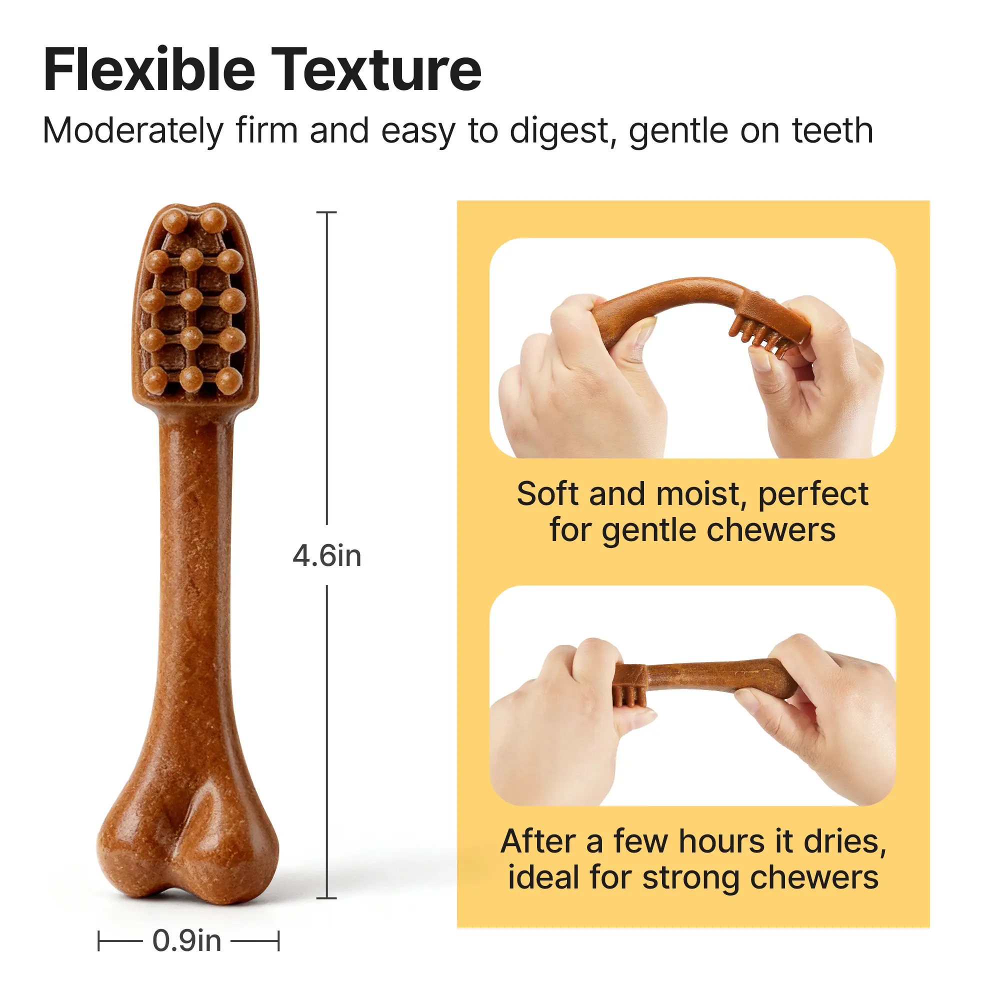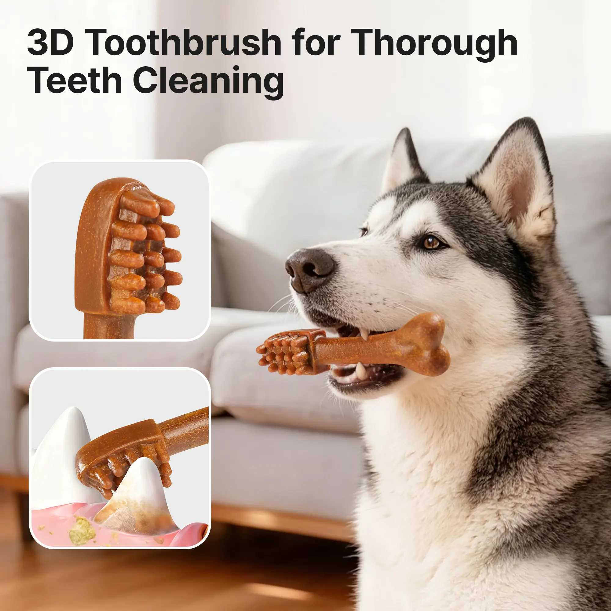 Effective Plaque & Tartar Removal: These dental chews are designed like large bones and brushing sticks. The unique toothbrush shape with textured nubs creates friction across multiple surfaces, helping to remove plaque and tartar while cleaning your dog’s teeth and maintaining their dental health.