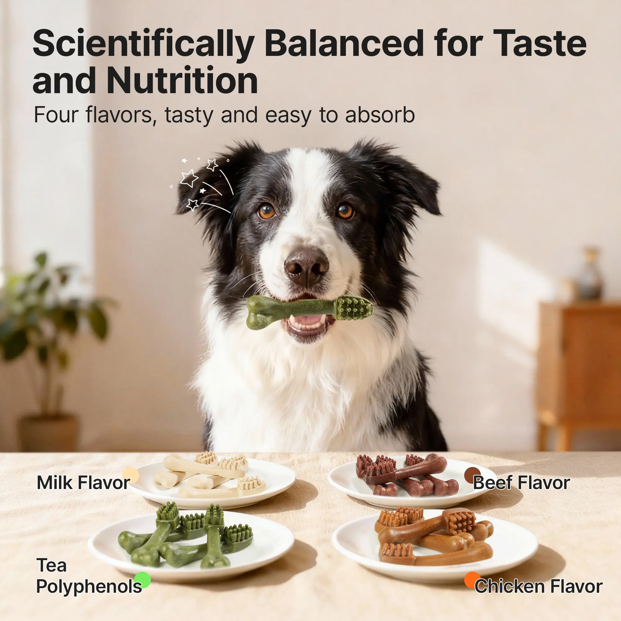 Long-Lasting Chews in 4 Tasty Flavors: The durable texture of these chews provides long-lasting satisfaction, fulfilling your dog’s natural chewing instincts and helping to reduce destructive behavior. Available in Tea Polyphenols, Chicken, Beef, or Milk flavors.