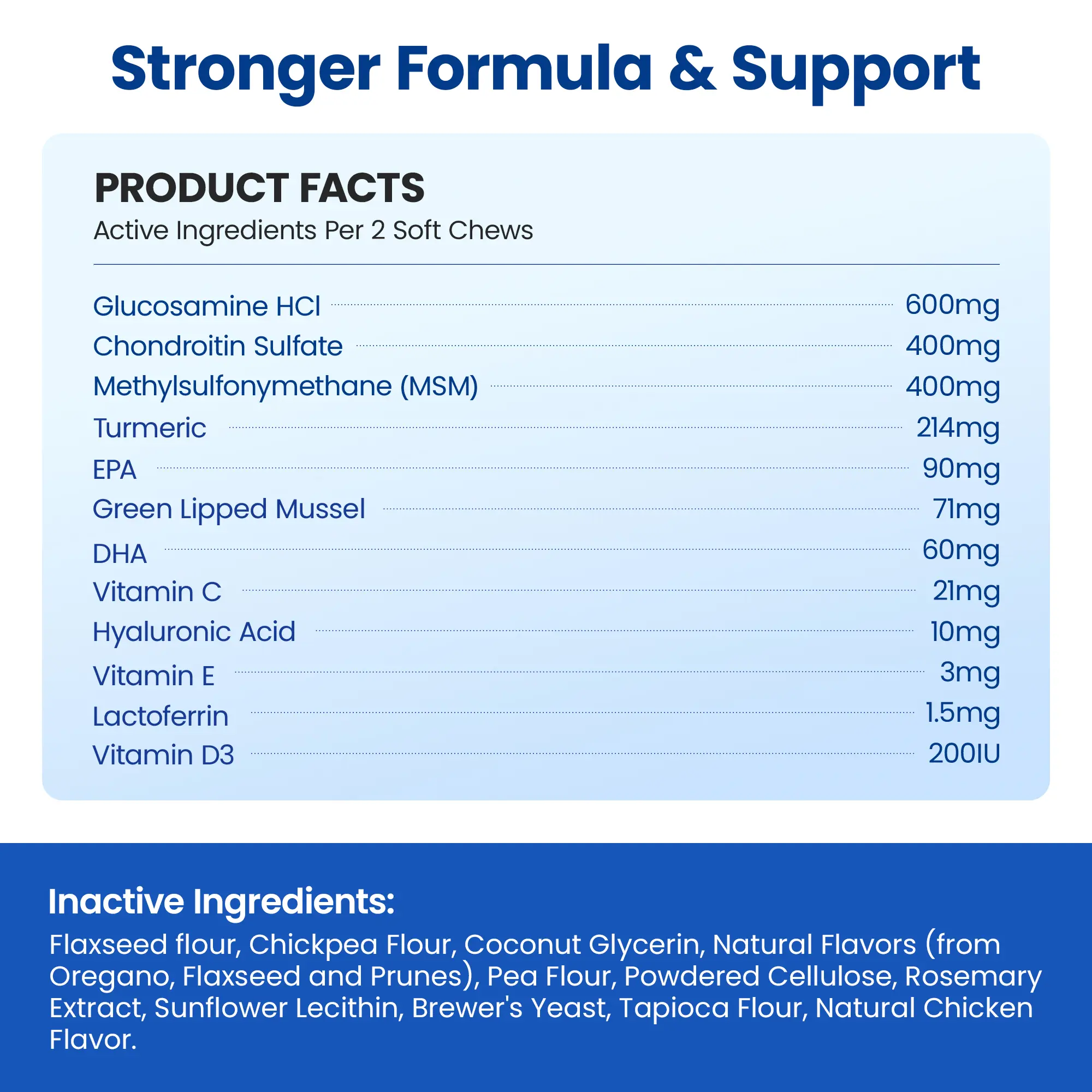 Mobility-Boosting Ingredients:Enhanced with MSM, green-lipped mussel, and turmeric, these ingredients promote joint function, provide comfort, and encourage an active lifestyle.