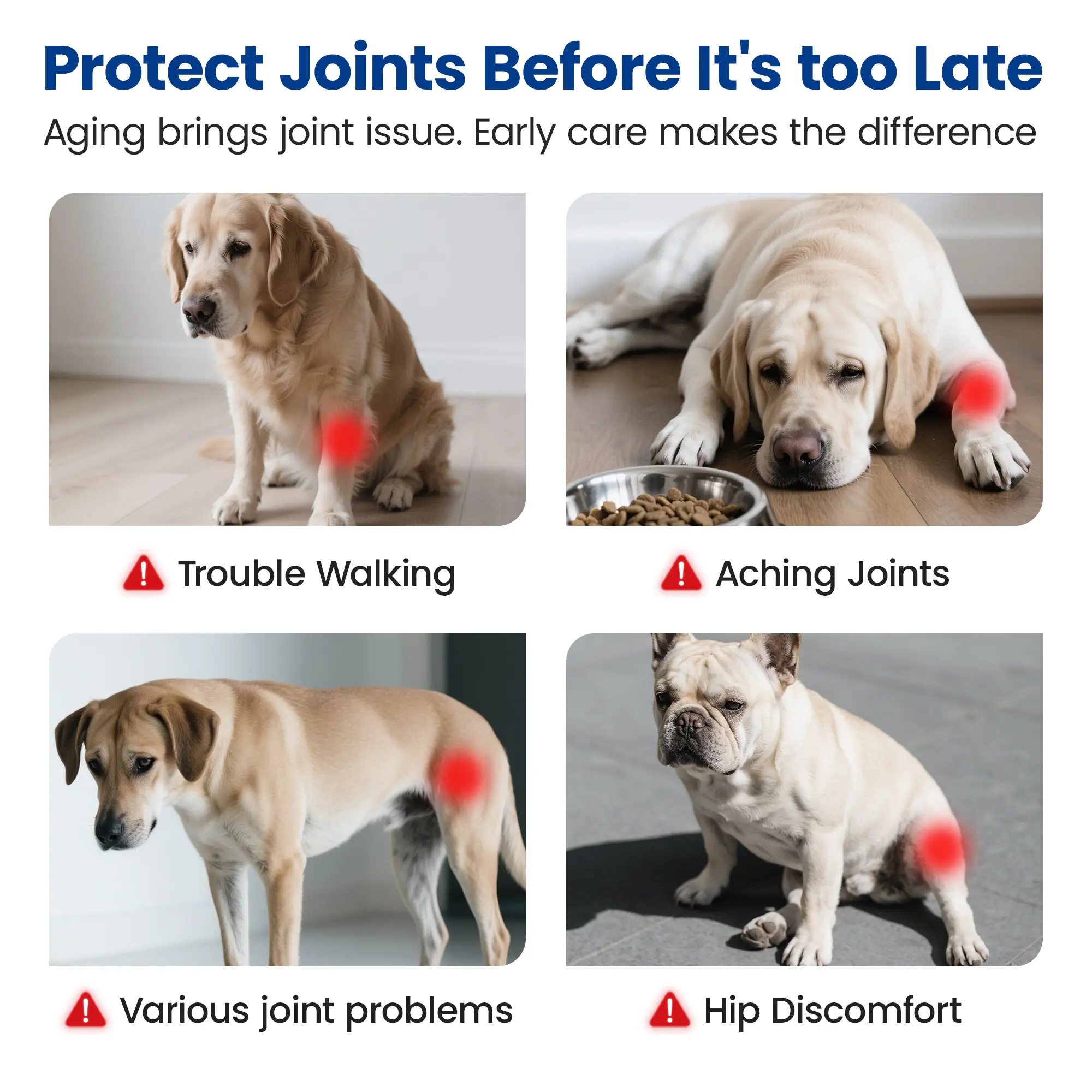 Long-Term Bone & Joint Wellness:Includes hyaluronic acid to help lubricate joints and strengthen bone structure, supporting your dog’s overall vitality and long-term health.