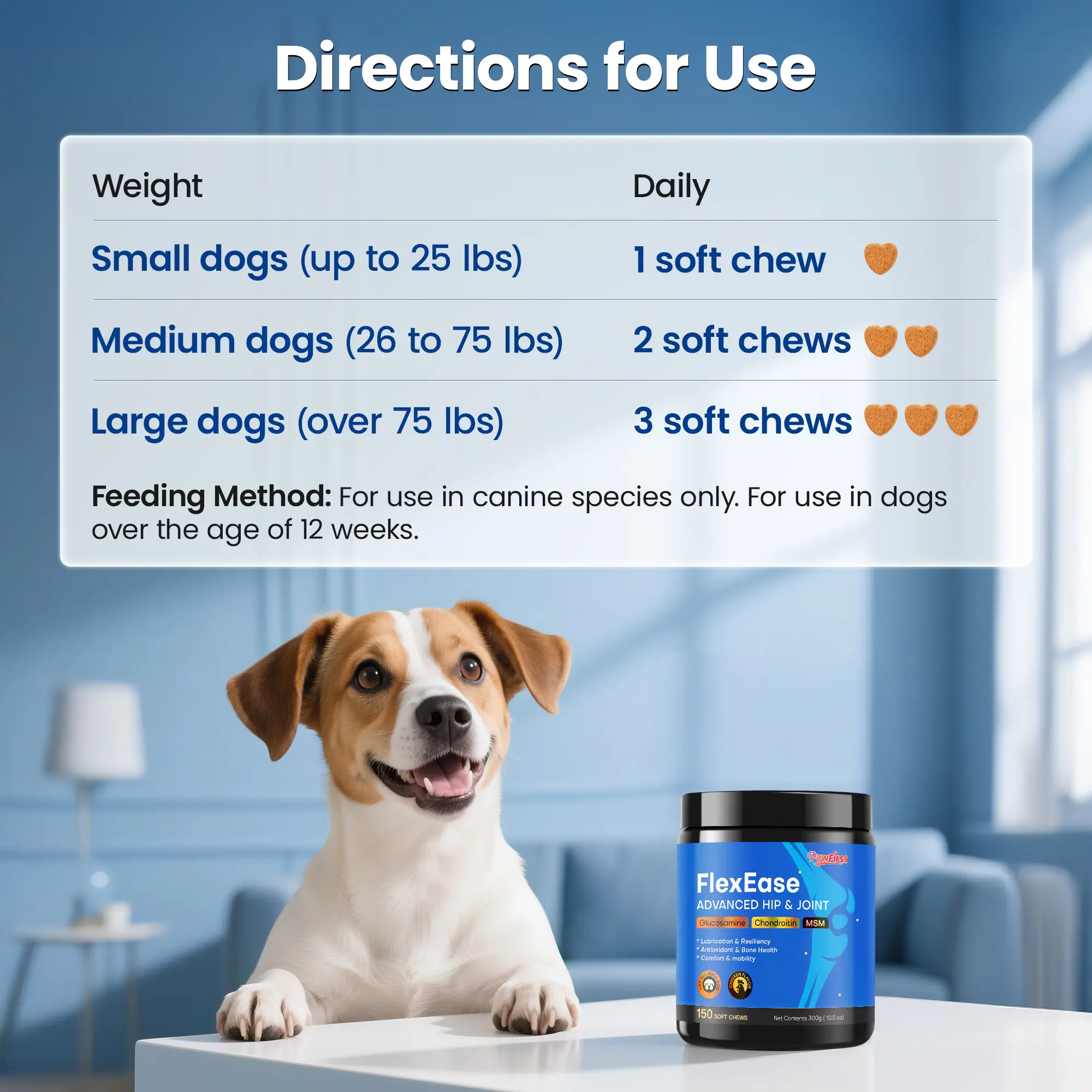 Suitable for all breeds and life stages, these chews offer a convenient and enjoyable way to support your dog’s joint and mobility needs every day.