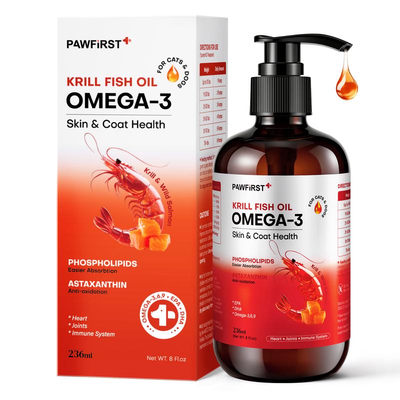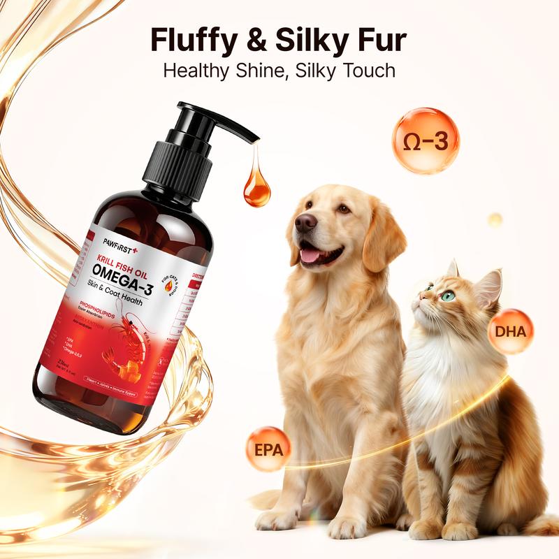 EPA and DHA from salmon and krill oil help maintain cardiovascular health, cognitive function, and joint mobility. These essential fatty acids also contribute to strong immunity, kidney function, vision, and overall vitality in both dogs and cats.