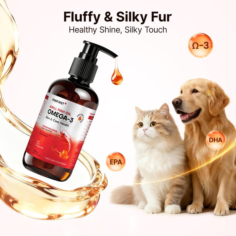 The EPA and DHA from both salmon and krill oil help maintain cardiovascular health, cognitive function, and joint mobility. These essential fatty acids also contribute to stronger immunity, better kidney function, improved vision, and overall vitality for both dogs and cats.