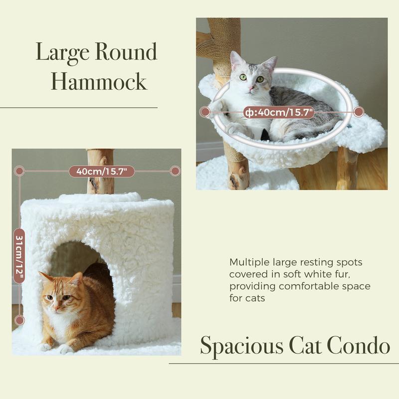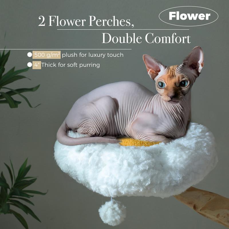 [Christmas Gift]59-Inch Modern Luxury Wood Cat Tree, Natural Wood, Condo& Hammock, Flower Design for Indoor Cats, White,New Year, Holiday[Christmas Gift]59-Inch Modern Luxury Wood Cat Tree, Natural Wood, Condo& Hammock, Flower Design for Indoor Cats, White,New Year, Holiday