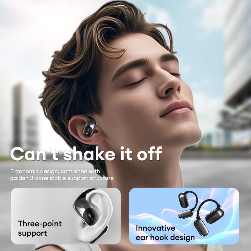 PAXA KC09 with Built-in 169-Language Translation Wireless Headphones with Electroplated Ear Hook Design – Comfortable, Great Sound, Bluetooth 5.4 Flash Connection, Wireless Earbuds for Music and Calls
