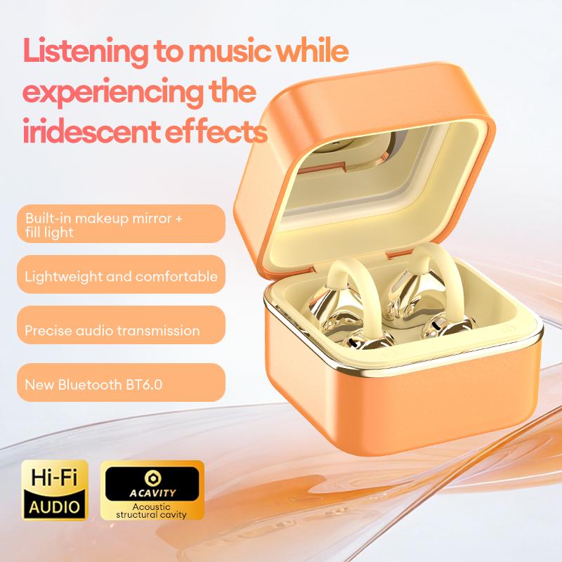 5. PAXA M161 Stylish Clip-On Wireless Headphones with Bluetooth 6.0, Built-In Makeup Mirror & Fill Light, Hi-Definition Sound, Low-Power Stable Connection, Audio Earbuds for Music & Phone Calls, Perfect Gift for Girls