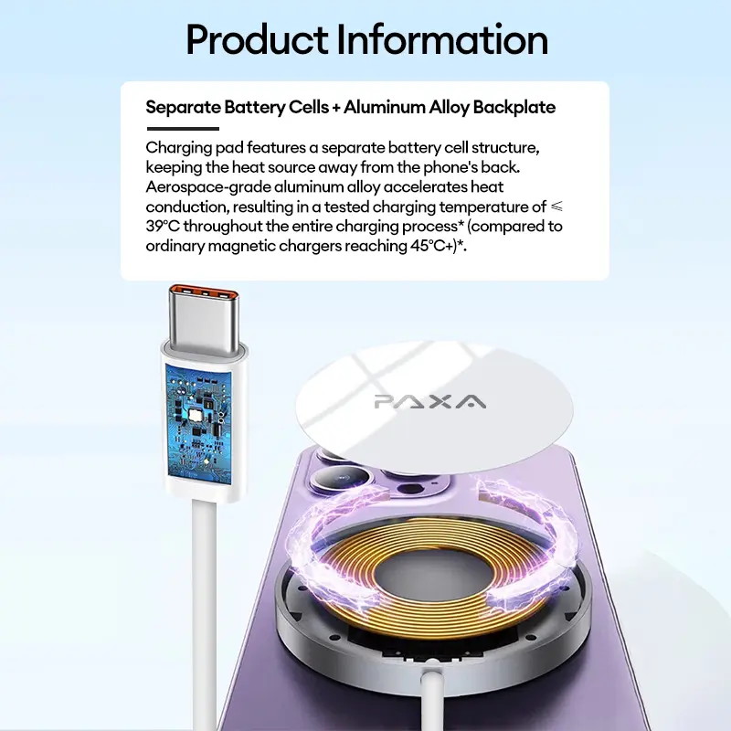 5. PAXA magnetic wireless charging stand, with strong magnetic attraction, supports 15W PD constant-temperature fast charging. It comes with an aluminum alloy stand, hands-free making it perfect for watching videos or playing games while charging.