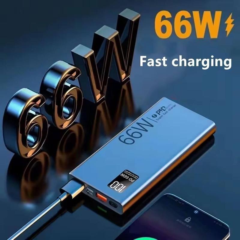 5. PD66W Super Fast Charging 30000mAh Large Capacity Portable Power Bank with LED Battery Display Outdoor Charger Compatible with Various Electronic Devices Black / White