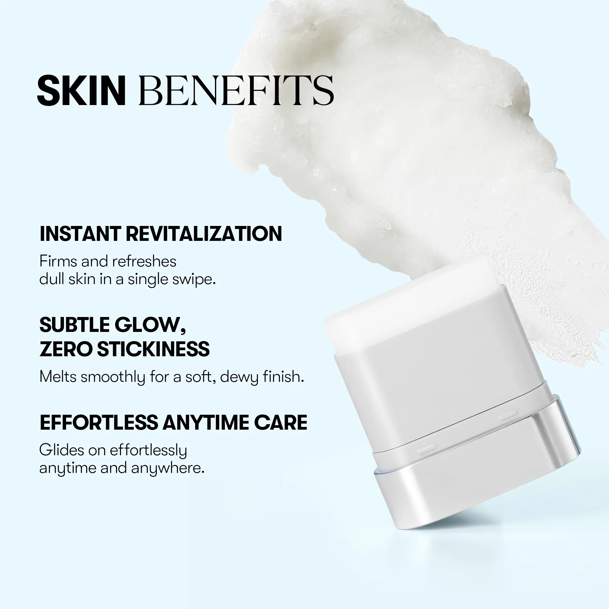 Creates the look of smooth, hydrated glass skin—perfect for touch-ups throughout the day.