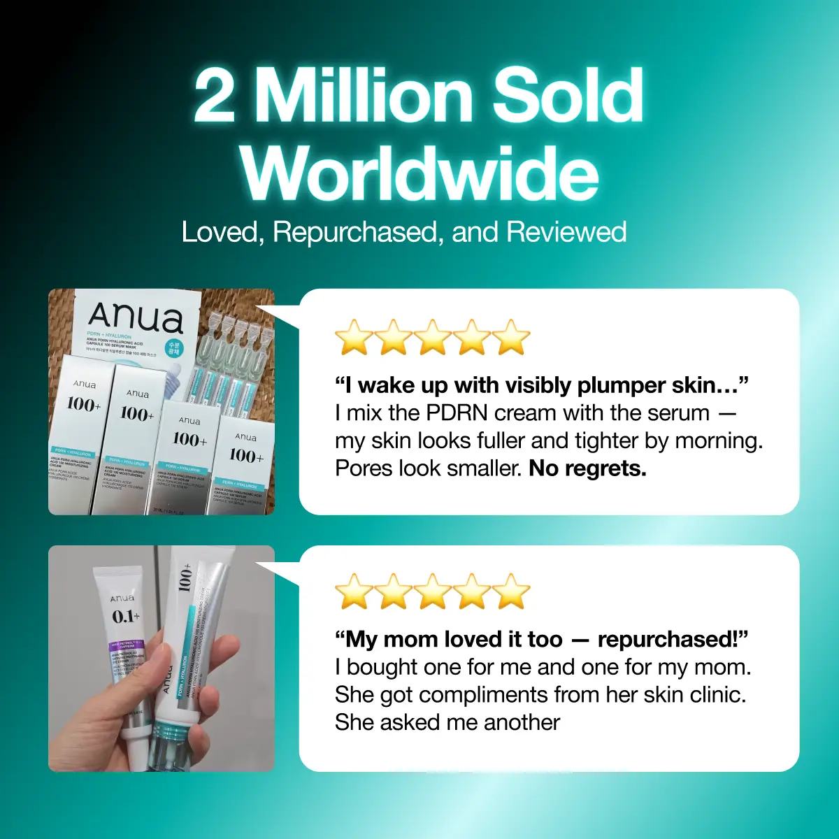 Advanced formula with PDRN, 10 types of Hyaluronic Acid, and Hydrolyzed Collagen for deep, multi-layered moisture and a firmer, glass-like glow.