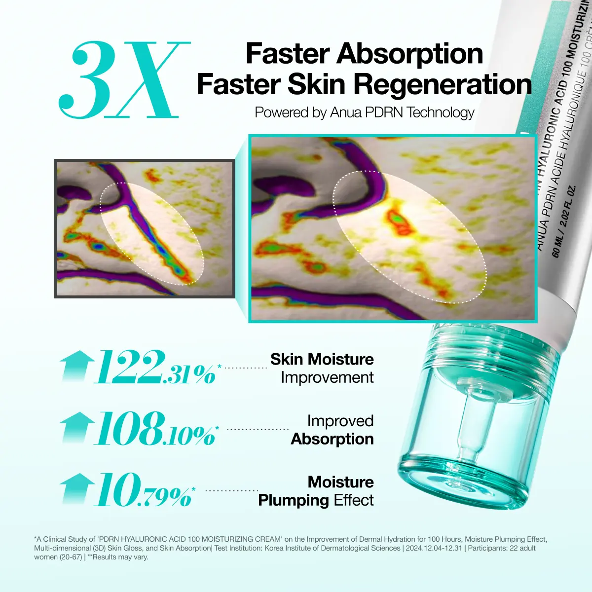 ·PDRN (Salmon DNA-derived ingredient)Clinically proven to enhance skin appearance and glow. +122.31% Skin Moisture Improvement