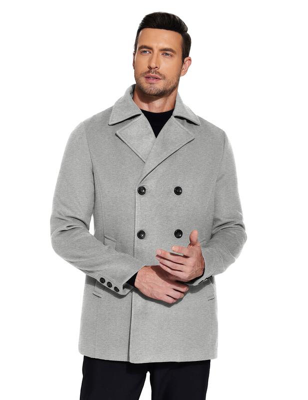 ¡Classic Design: Men's pea coat, traditionally waist to hip length, designed with broad lapels and double-breasted closure, 2 slash pockets. This classic coat designs are effortlessly timeless and classics in any wardrobe.