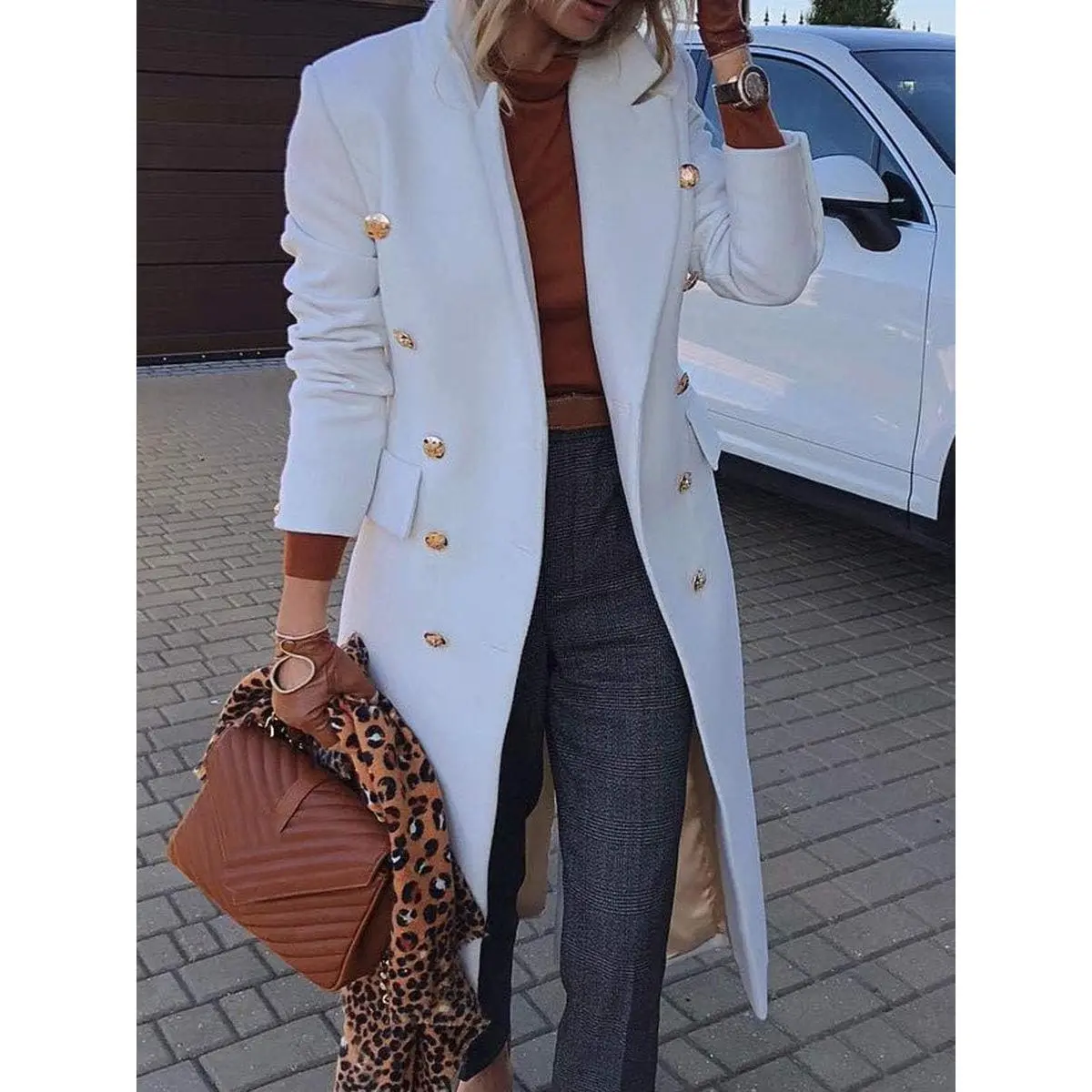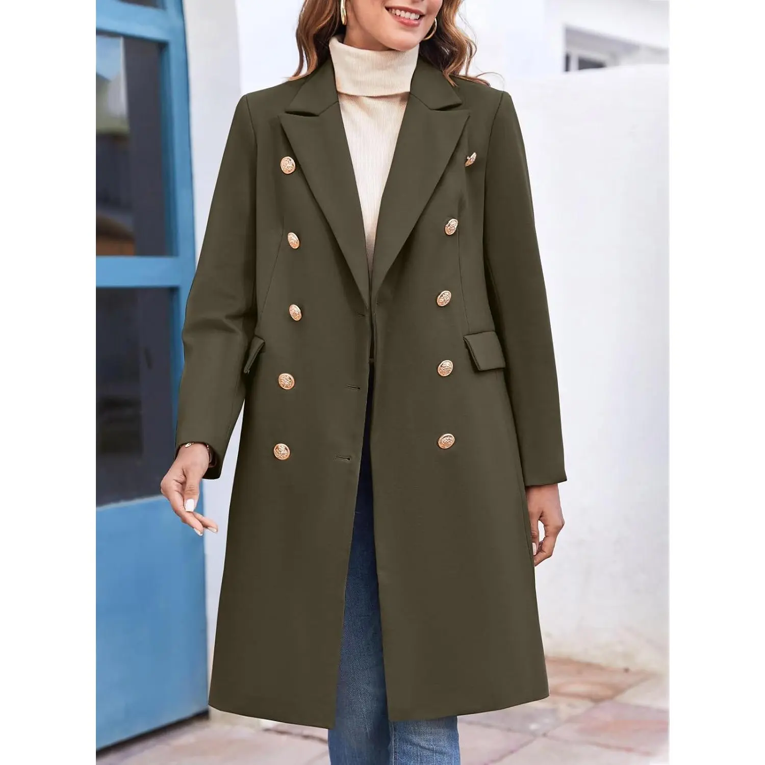 Women's Casual Notched Lapel Work Office Trendy Wool Trench Pea Coat