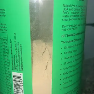 Naked Pea has only one ingredient: Pea protein extracted from yellow split peas grown on US and Canadian farms. Pea protein is easily absorbed by the body, making it an excellent plant-based alternative to whey protein.