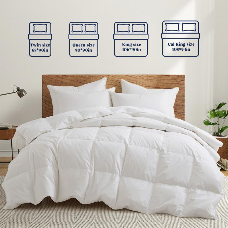 Four sizes: Twin (68*88"), Full/Queen (88*88"), King (104*88"), Cal King (108*94"). Whether you need a twin-sized comforter for a guest room or a king-sized one for a cozy night's sleep, the PEACE NEST Down Comforter is your go-to choice.