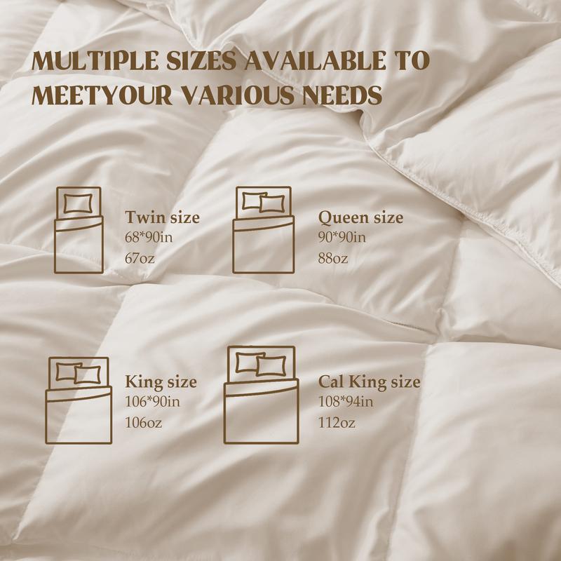 ·This white down comforter is perfect for cozy bedding, providing a plush fill for deep sleep.