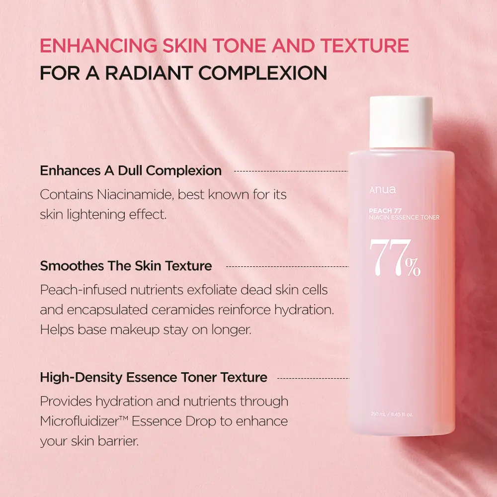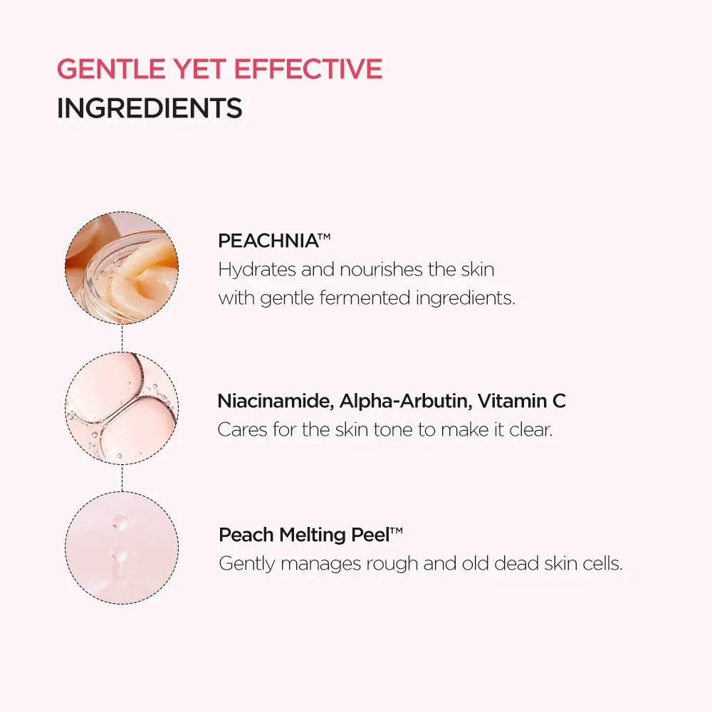 | Ingredients | 2,1,Water,Allantoin,Panthenol,Dipropylene Glycol,Lysine,Glutamic Acid,Squalane,Glycerin,Ascorbyl Glucoside,Xanthan Gum,Butylene Glycol,Valine,Sodium Hyaluronate,Arginine,Ethylhexylglycerin,Methylpropanediol,Ascorbic Acid,Alpha-Arbutin,Ceramide NP,Tocopherol,Polyglutamic Acid,Adenosine,Sodium Polyacrylate,Bifida Ferment Lysate,Dipotassium Glycyrrhizate,Maltodextrin,Galactomyces Ferment Filtrate,Betaine Salicylate,Methionine,Leucine,Phenylalanine,Caprylic/Capric Triglyceride,Threonine,Aspartic Acid,Histidine,2-Hexanediol,Triethylhexanoin,Tromethamine,Xylose,Fragrance(Parfum),Bacillus Ferment,Phellinus Linteus Extract,Streptococcus Thermophilus Ferment,Tyrosine,Prunus Persica (Peach) Flower Extract,Propanediol.,lsoleucine,Pyrus Malus (Apple) Juice,77% of peach extract fermented at a low temper ature for 120 hours,fermented ceramide,galac: omyces fermented filtrate,and bifida fermentec ysate deliver deep nutrition to the skin to give smooth and moist skin. INGREDIENTS Prunus Persica (Peach) Fruit Extract,3-Butane diol,Niacir amide,Lactoba cillus Ferment,Hydrolyzed Veget able Protein,PolyglyceryI-10 Laurate,Acrylates/C10-30 AlkyI Acrylate Cross polymer,Diphenyl Dime thicone,Poly glyceryl-10 Stearate,Hydrogenated Lec thin,Sodium Hyalu ronate Crosspolymer,Cyanc cobalamin,Sodium StearoyI Glu tamate,Glycine Serine,Ala nine,Pro line,Cyste ine |