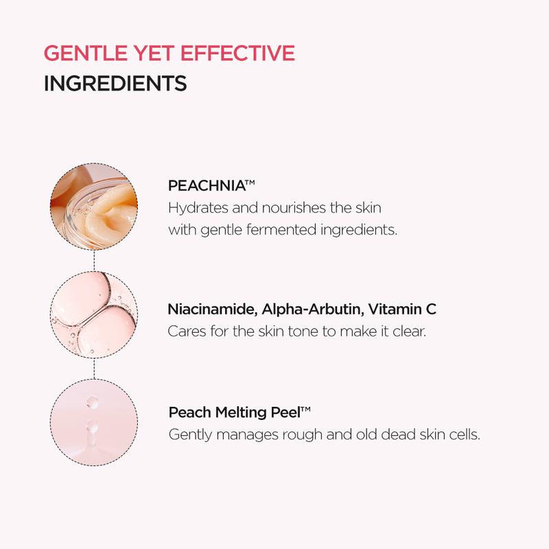 😌Help base makeup stay on longer😌: Peach Melting Peel ****exfoliates dead skin cells, and encapsulated ceramides reinforce hydration, making it helpful for smoothing the skin texture.