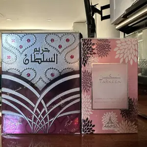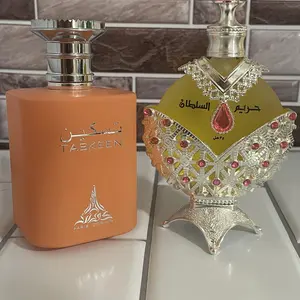 Very satisfied with the silver hareem al sultan, as I’ve purchased the gold already from this shop. Not sure how to describe scents but smells floral kind of soapy like a fresh soap. With the taskeen though I’m not sure what happened to my bottle, if it was possibly used prior but it smells good.
