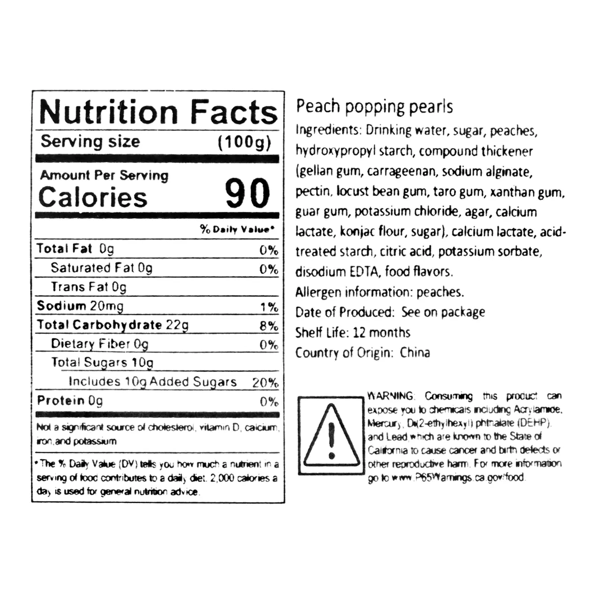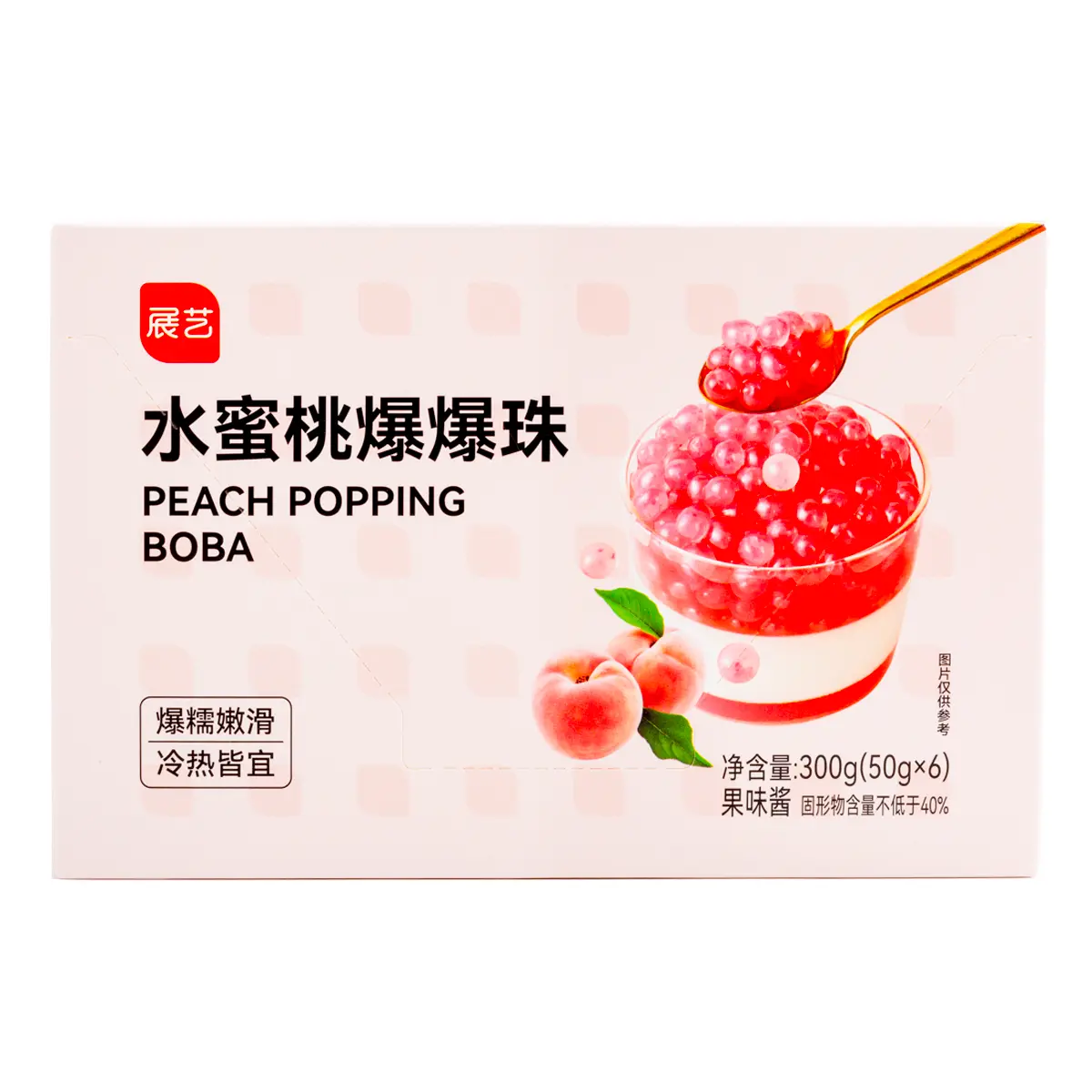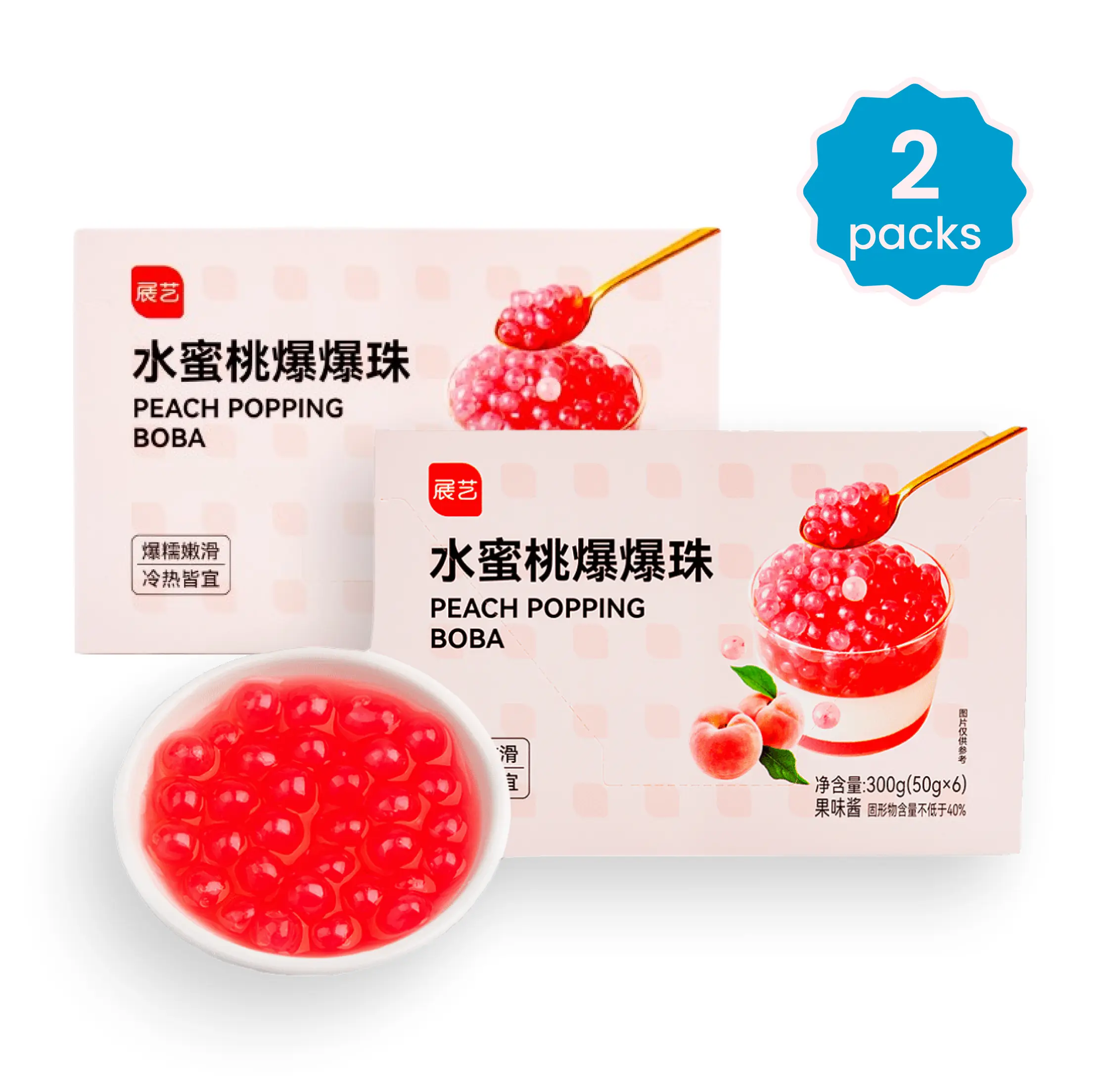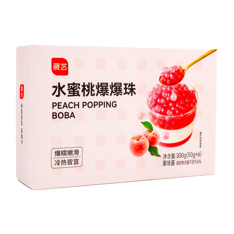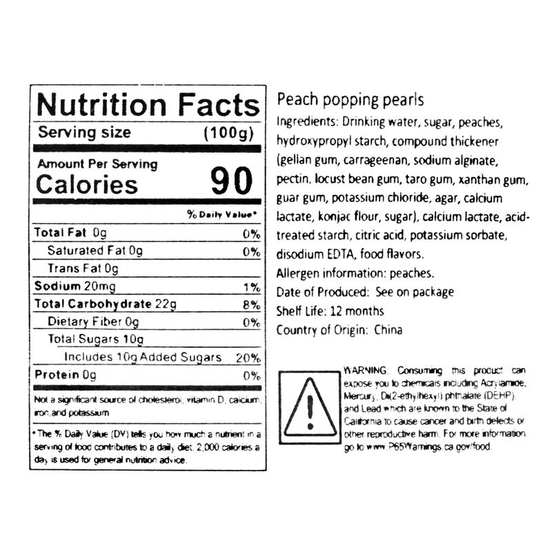 Add a juicy burst of flavor to your drinks and desserts with these Peach Popping Boba Pearls! Each pearl is filled with refreshing peach juice that pops in your mouth, delivering a fun and fruity experience with every bite.