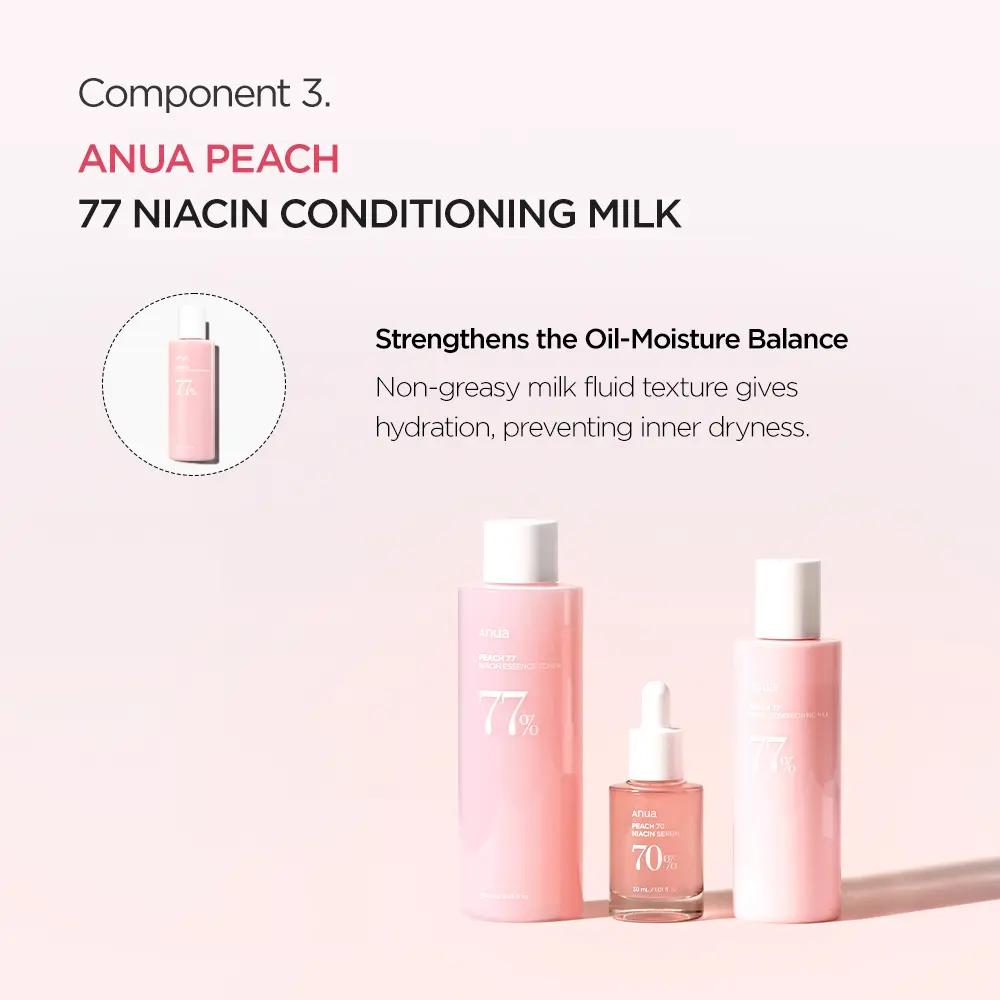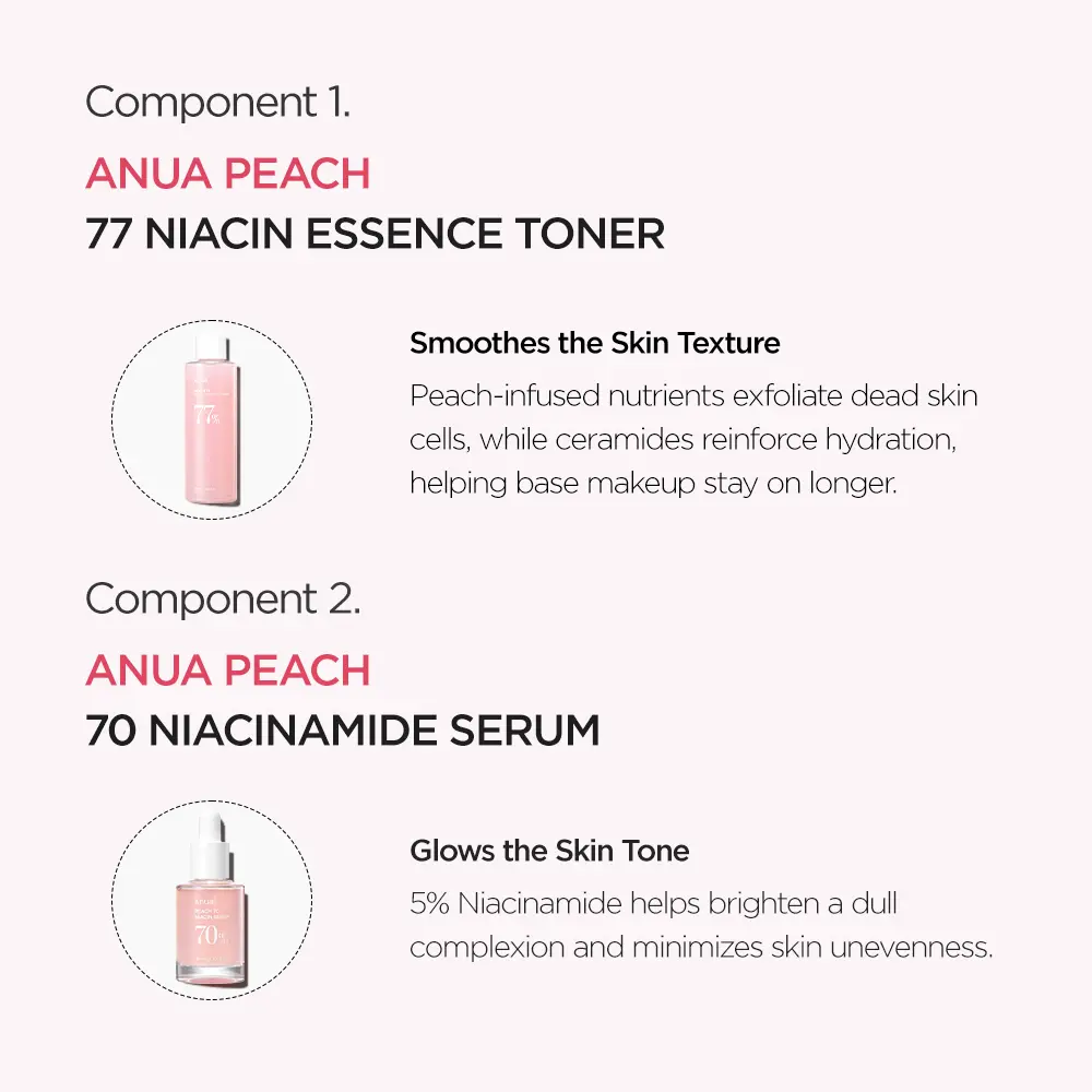 🍑This item is composed with 3 products : Peach toner, niacinamide Serum and peach milk 🍑