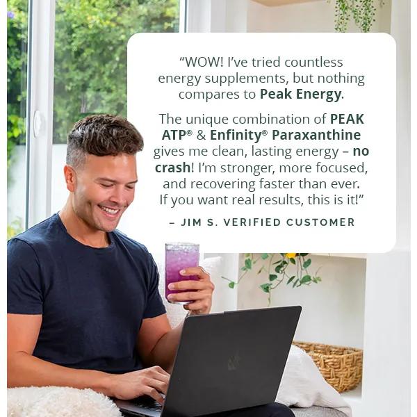 Ditch the coffee and energy drinks! Peak Energy combines clinically studied doses of PEAK ATP, a muscle-fueling powerhouse that enhances endurance, strength, and cognitive performance and Enfinity Paraxanthine, a caffeine metabolite for fast, clean focus without the crash or jitters, in one revolutionary formula.*