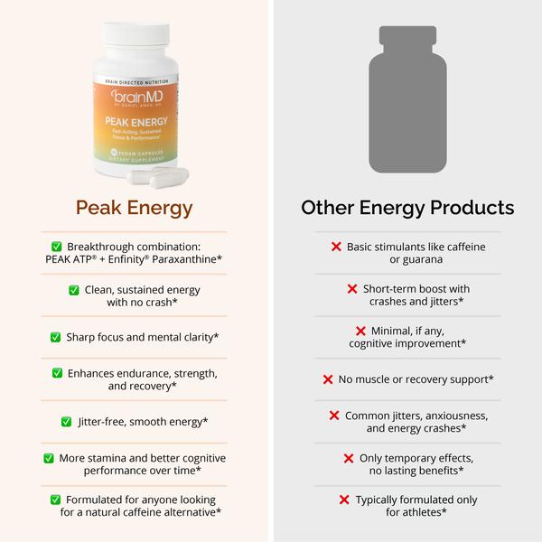 Ditch the coffee and energy drinks! Peak Energy combines clinically studied doses of PEAK ATP, a muscle-fueling powerhouse that enhances endurance, strength, and cognitive performance and Enfinity Paraxanthine, a caffeine metabolite for fast, clean focus without the crash or jitters, in one revolutionary formula.