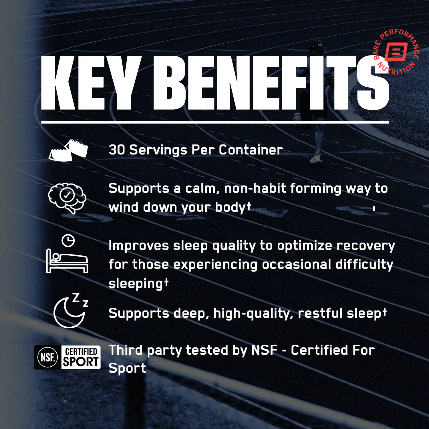 A night-time sleep support gummy supplement with ingredients to improve sleep quality and recovery.