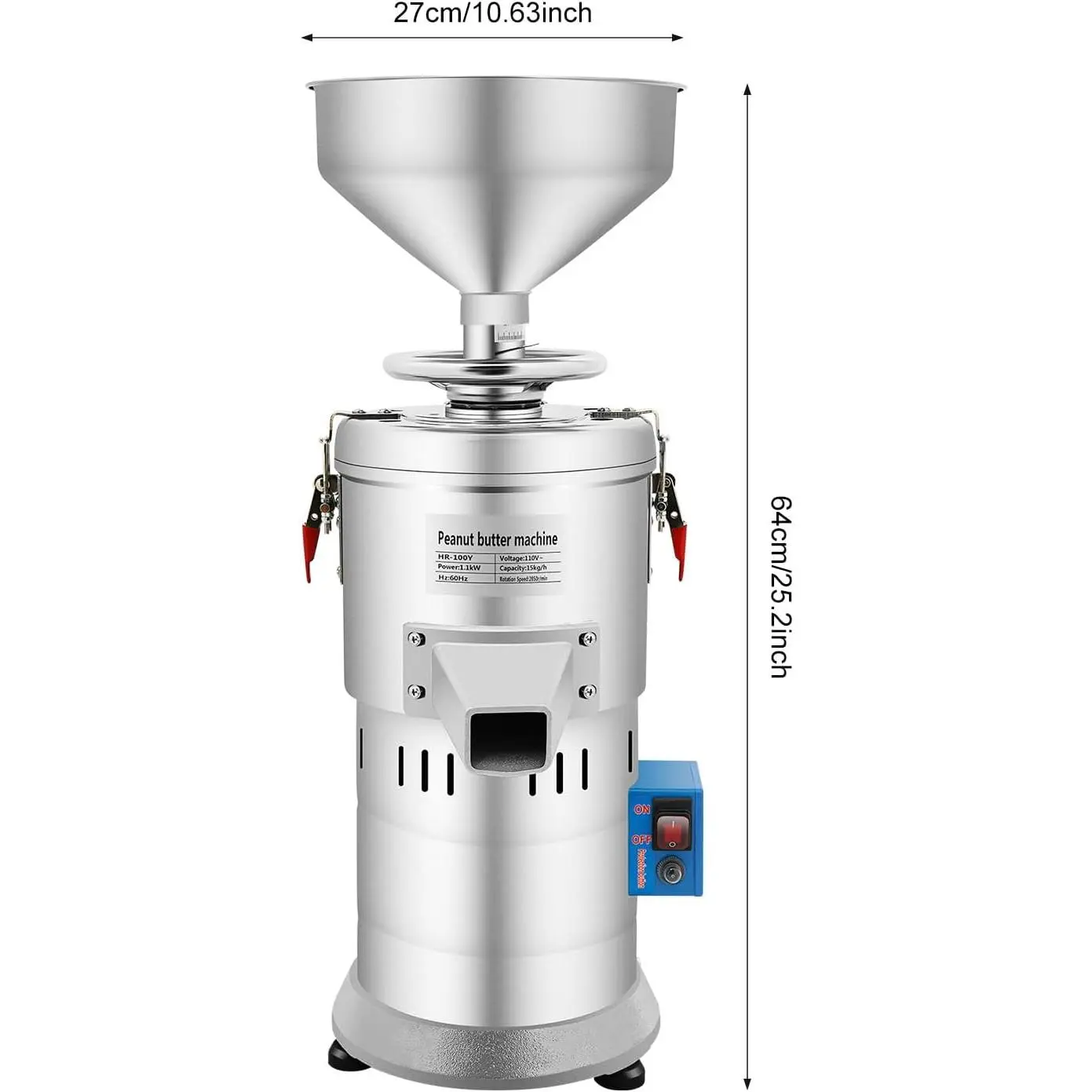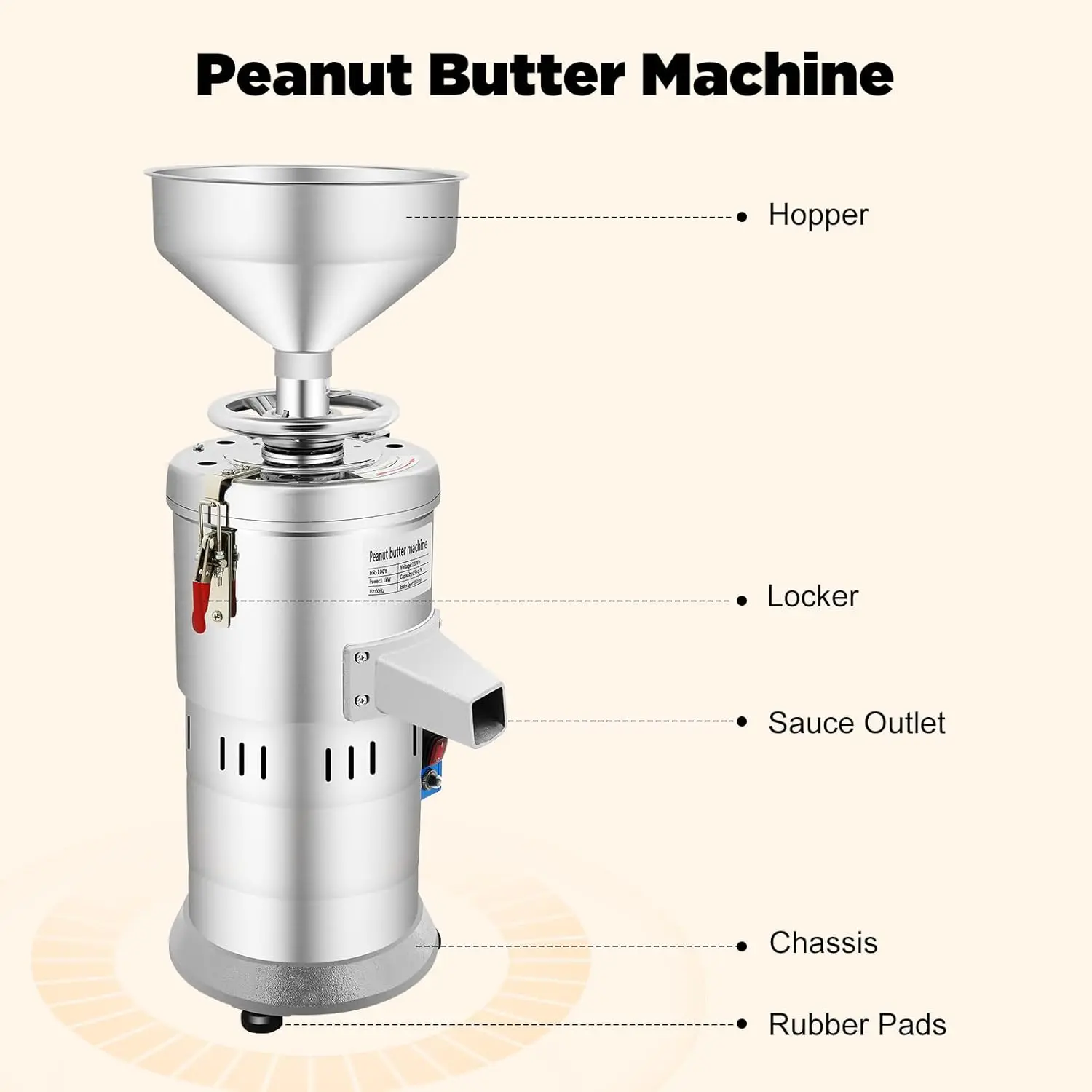 he heat dissipation holes can speed up the heat dissipation of the internal motor, thus ensuring that the machine can work stably for a long time without overheating. What's more, this commercial peanut butter machine is overload protected, so you can use this electric nut butter machine with confidence.