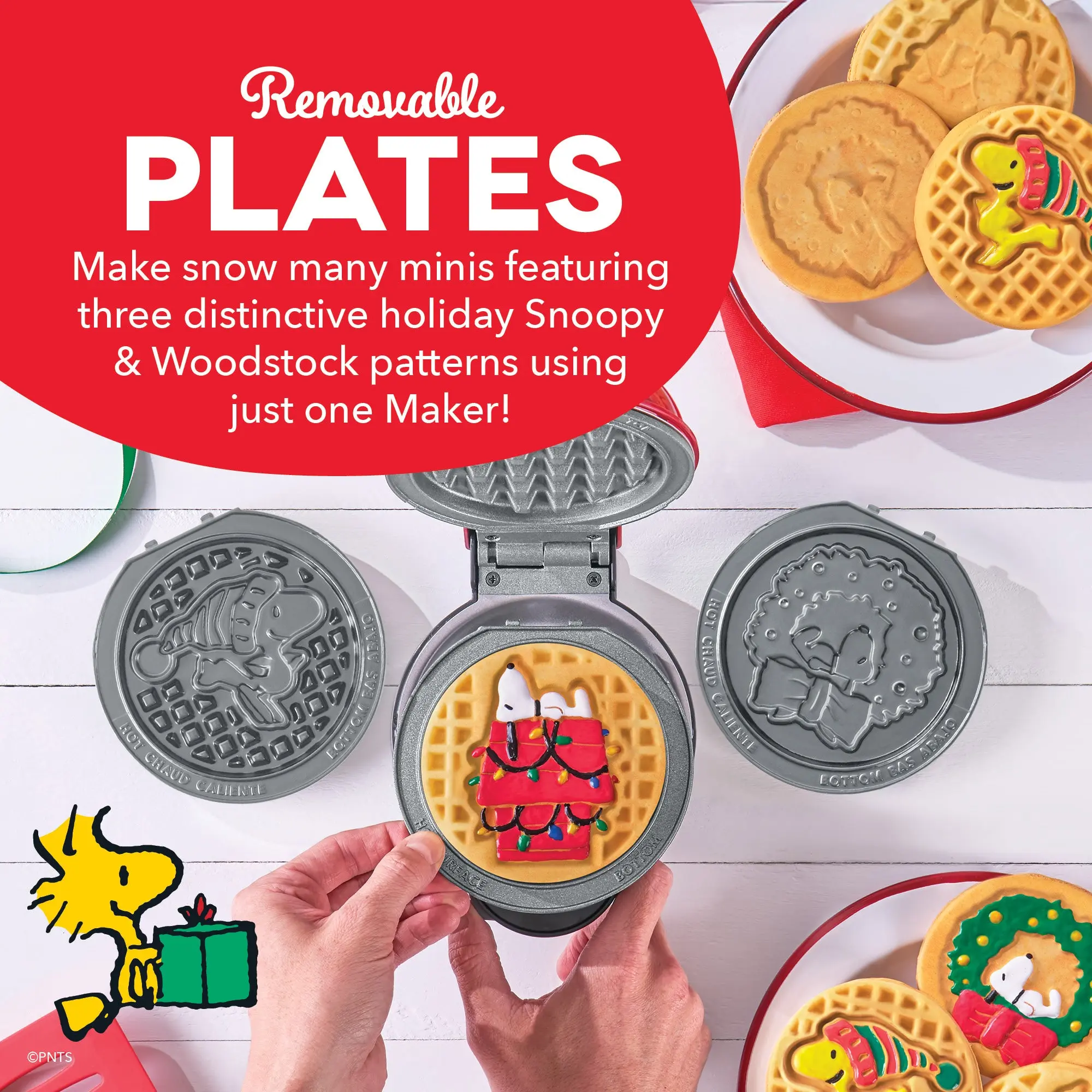 Everybody’s favorite beagle is ready for a festive breakfast! Snoopy is coming out of the doghouse to add Peanuts® fun to your morning meal with the Dash MultiMaker® Mini Maker System. With our interchangeable Removable Plates, you can whip up adorable mini waffles shaped like Doghouse Snoopy, a festive Snoopy Wreath, and delightful Winter Woodstock. Easily snap & swap between Plates for merry minis that are ready to decorate. Dual nonstick ceramic cooking surfaces release waffles easily and cleanly for picture-perfect results and quick cleanup. Looking for sweet & savory ideas that are doggone delicious? Check out the included Recipe Guide! And make even more with your MultiMaker® Mini Maker System with new Removable Plates for every season and holiday released throughout the year.
