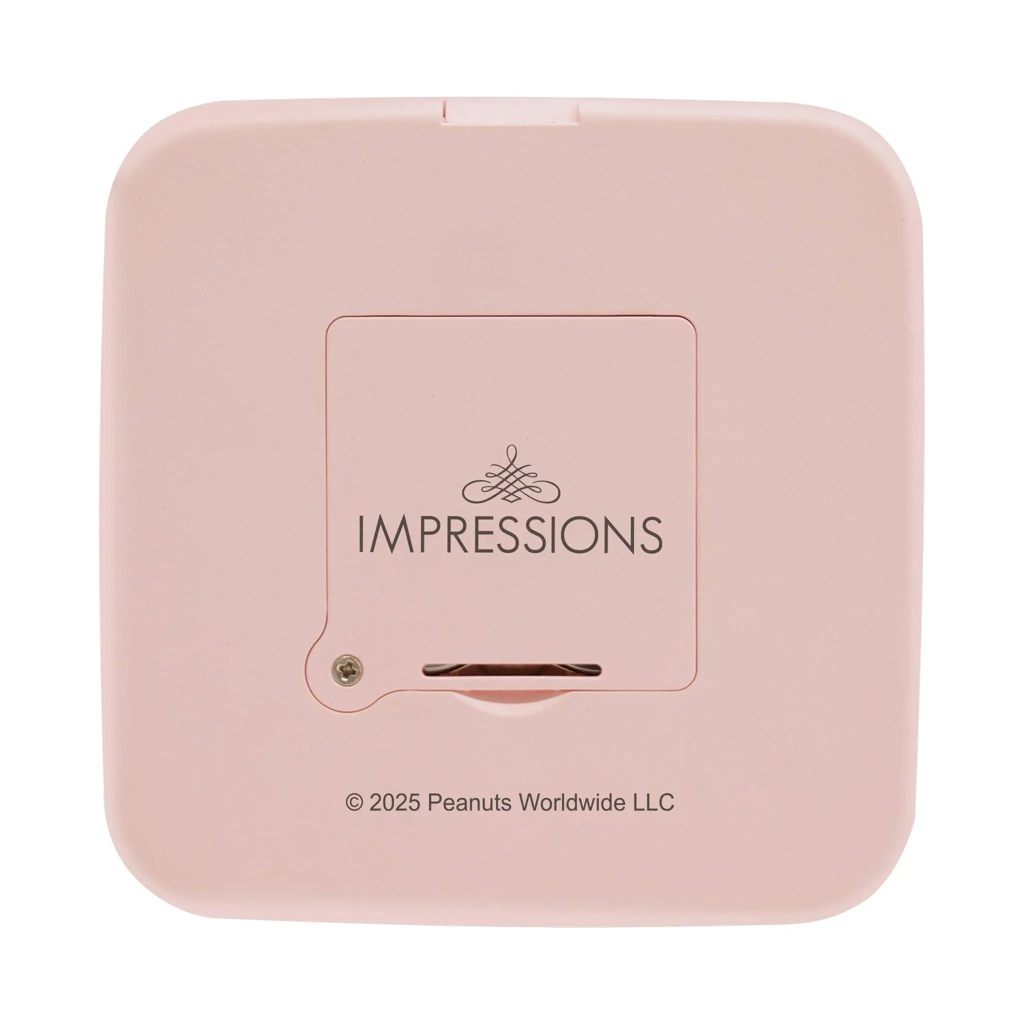 Bring classic Peanuts charm to your touchups with this compact mirror! With built-in LED lighting and adjustable brightness, you'll never have to worry about bad lighting again. Plus, the 2x magnified top mirror is perfect for those close-up moments. Please note, compact is battery powered. oments. Why We Love It : Peanuts Snoopy Artwork Soft Touch Sensor Adjustable Brightness Daylight LED Lighting 2x Magnified Top Mirror Batteries Included (4 CR2032) Width 4 in. Height 4 in. Depth 0.8 in.