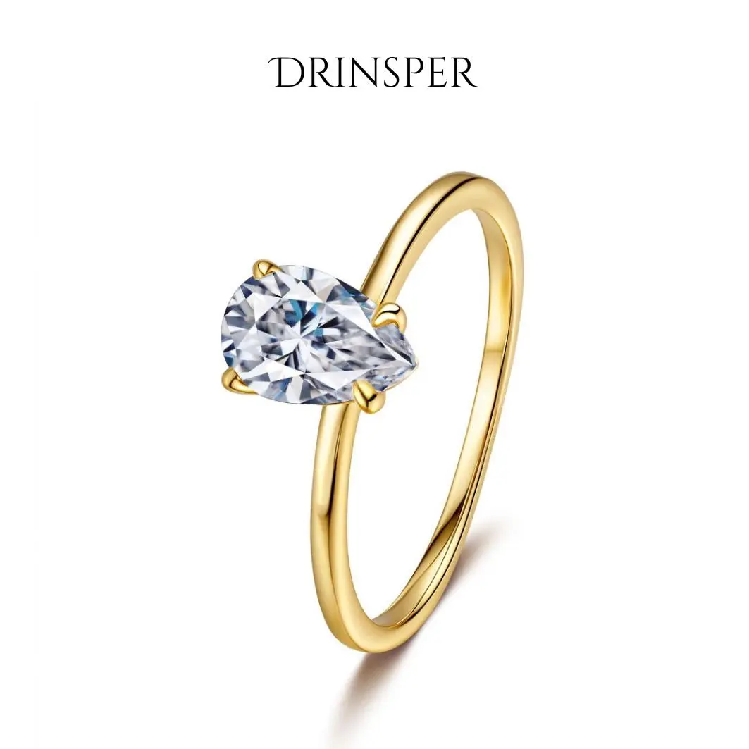 5. Drinsper Solitaire Pear-Cut S925 1.0ct DVVS Synthetic Moissanite 18K Gold-Plated Sterling Silver Ring for Women Girls Versatile Simple Elegant Style Suitable for Daily Wearing Chrisamas Jewelry Gift for Girlfriend Mom