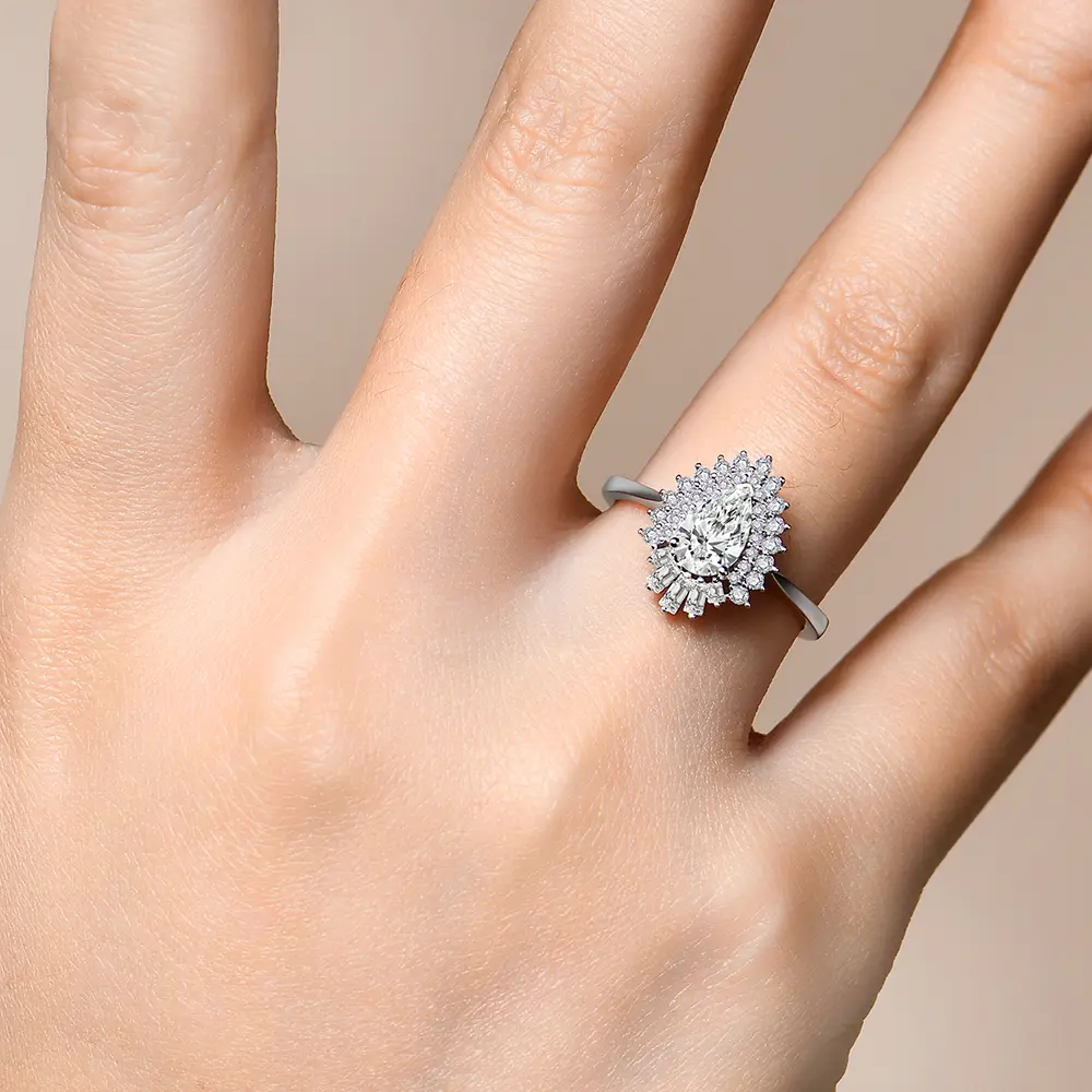 5. Luxury Pear Cut 1.0CT Synthetic Moissanite Promise Ring for Her Wedding Bands for Women R117