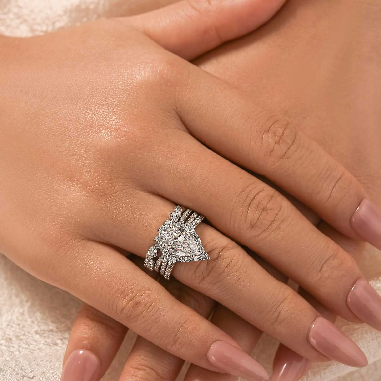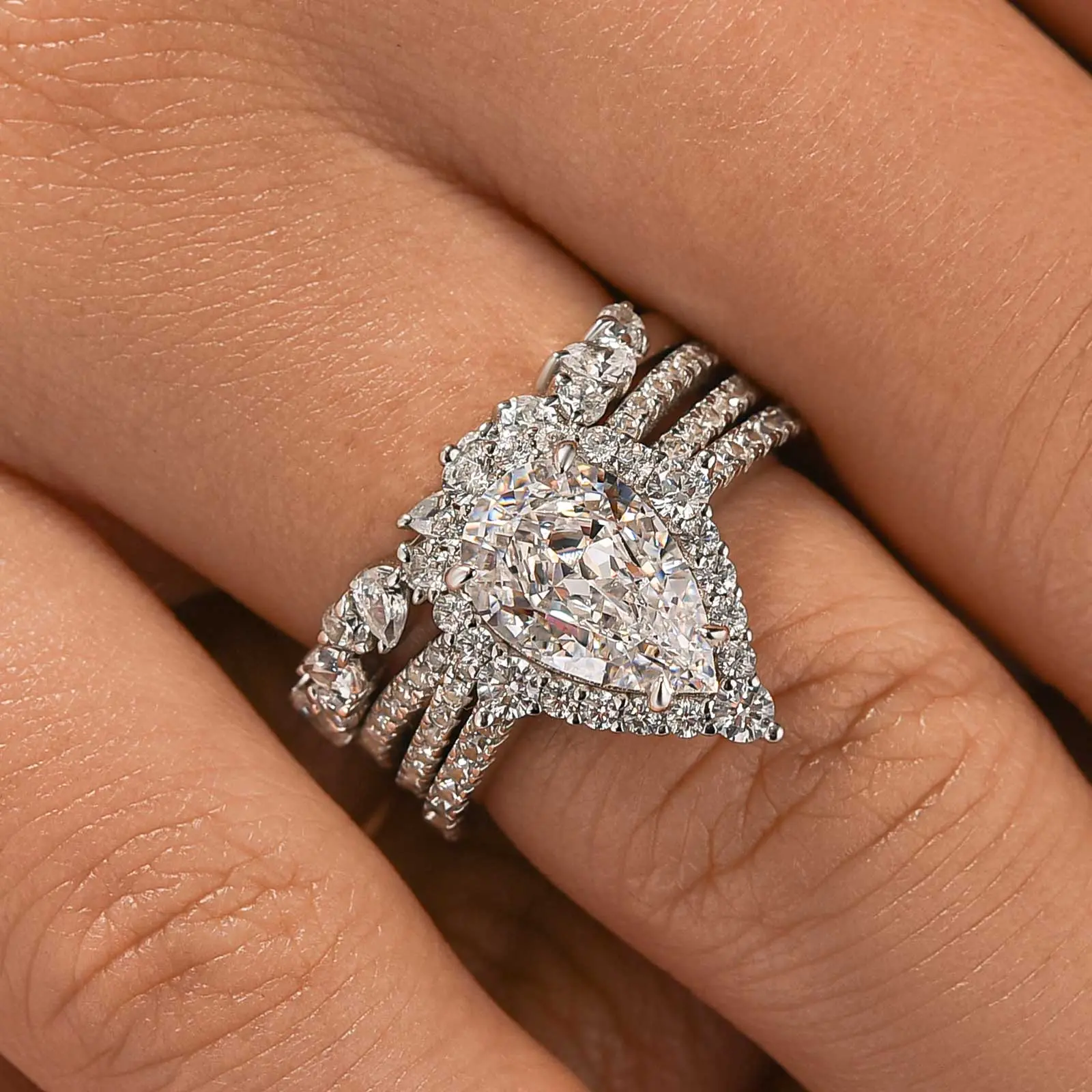 Effinny Pear Cut Wedding Ring Set #effinnyring #jewelry #tiktokfashion #engagementring #tiktokfashion #engagementring #jewelylove #weddingringset #ringset #pearcut
