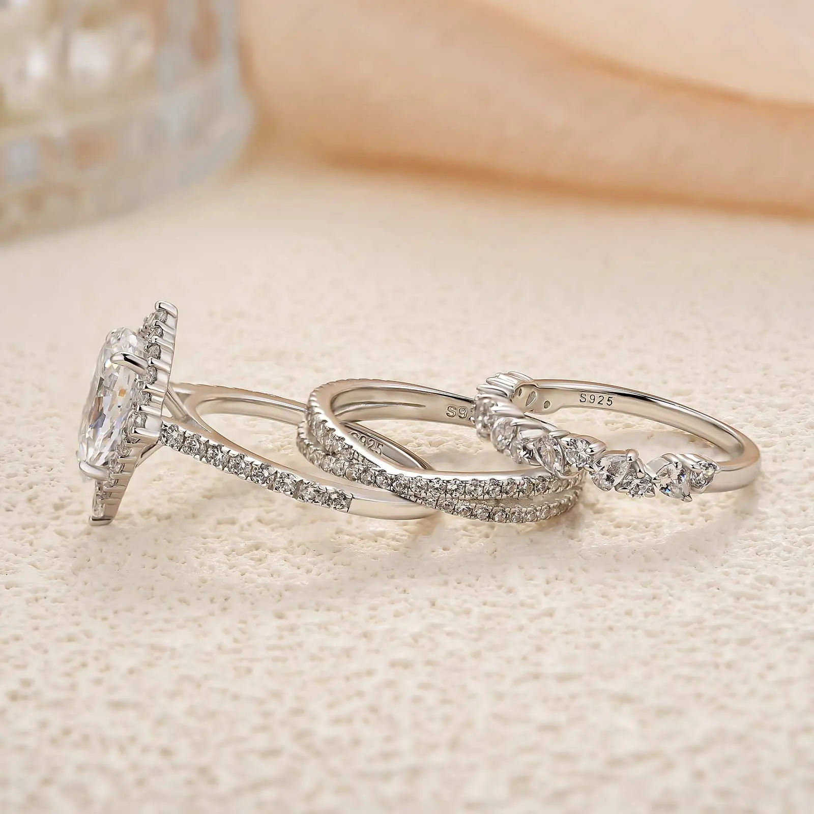 Effinny pear shaped 3pcs wedding ring set #effinnyring #cubiczirconia #falldealsforyou #jewelry #silverrings #fypage #gemstonejewelry #weddingringset