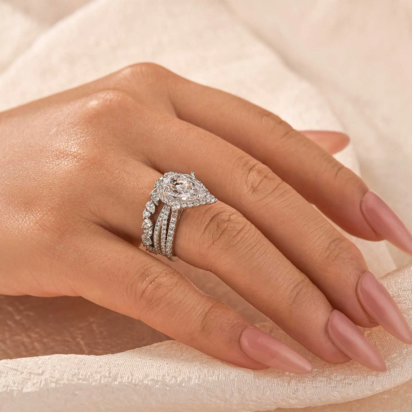 3pcs pear shaped wedding ring set#effinnyring #falldealsforyou #effinnyjewelry #sliverring #weddingring #weddingringset #cubiczirconia #jewelylove #pearshape #trendy #trendynails