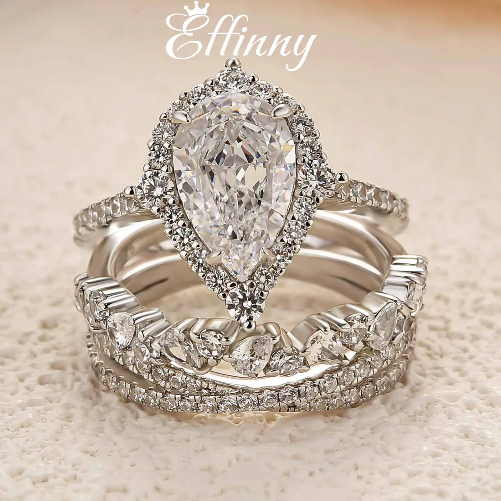 Effinny Pear Cut Ring Set#effinnyring #jewelry #tiktokfashion #engagementring #jewelylove #sliverring #tiktokshopbacktoschool #ringset #weddingringset #pearcut