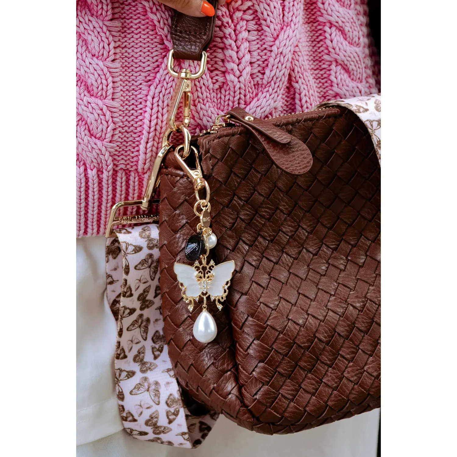 Meet the Pearl Butterfly Charm — your new favorite bag accessory. With its gold finish and pearly inlay, this charm strikes the perfect balance between sweet, stylish, and just a touch flirty.