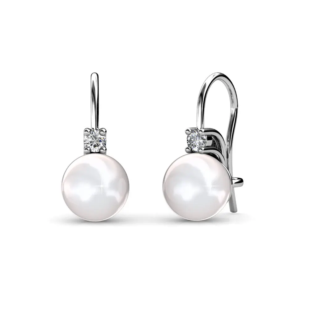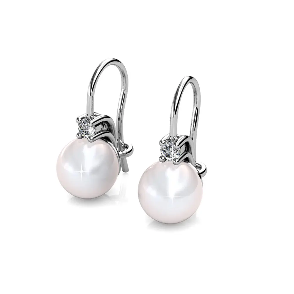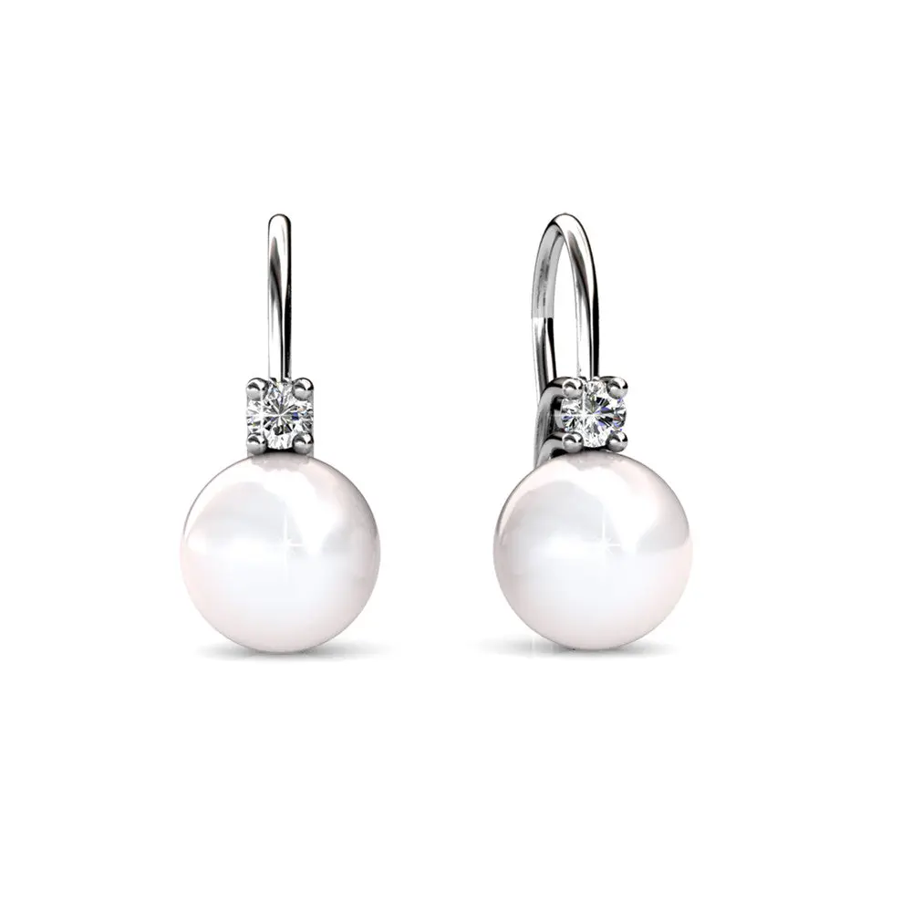 Cassie 18k White Gold Plated Pearl Drop Earrings with Simulated Diamond Crystals