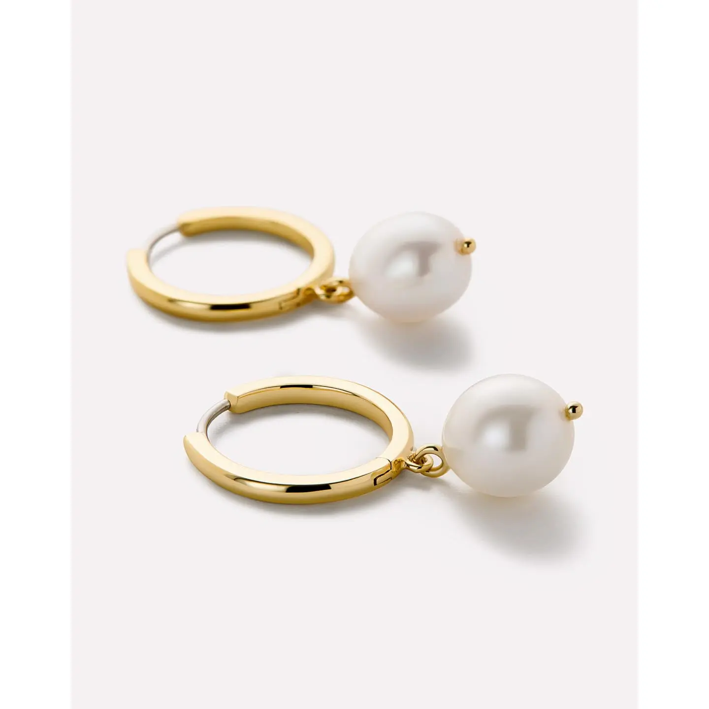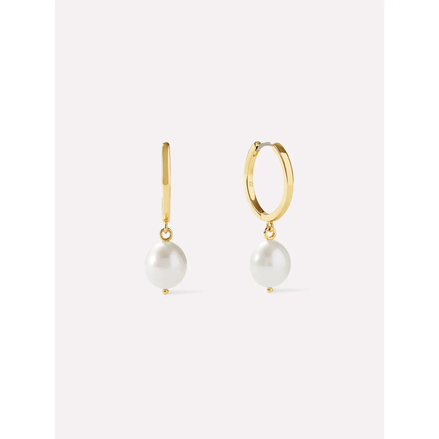 • 14K gold-dipped huggie hoops • Features a freshwater pearl on each earring