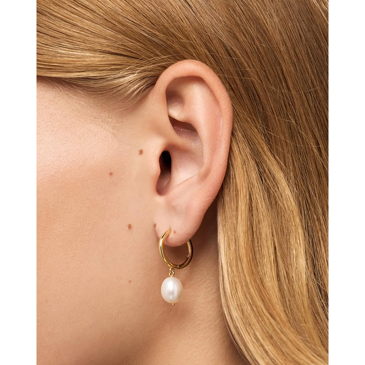 Meet our pearl hoop earrings—a bigger, bolder version of our best-selling Frida earrings. These 14K gold-dipped hoops are just the right size for others to see, and what’s revealed is a single dangling freshwater pearl on each ear. Wear these pearl hoops alone or pair them with classic pieces like our Mini Huggie Hoops for a well-rounded stack. Looking for something smaller? Shop the original Frida earrings.