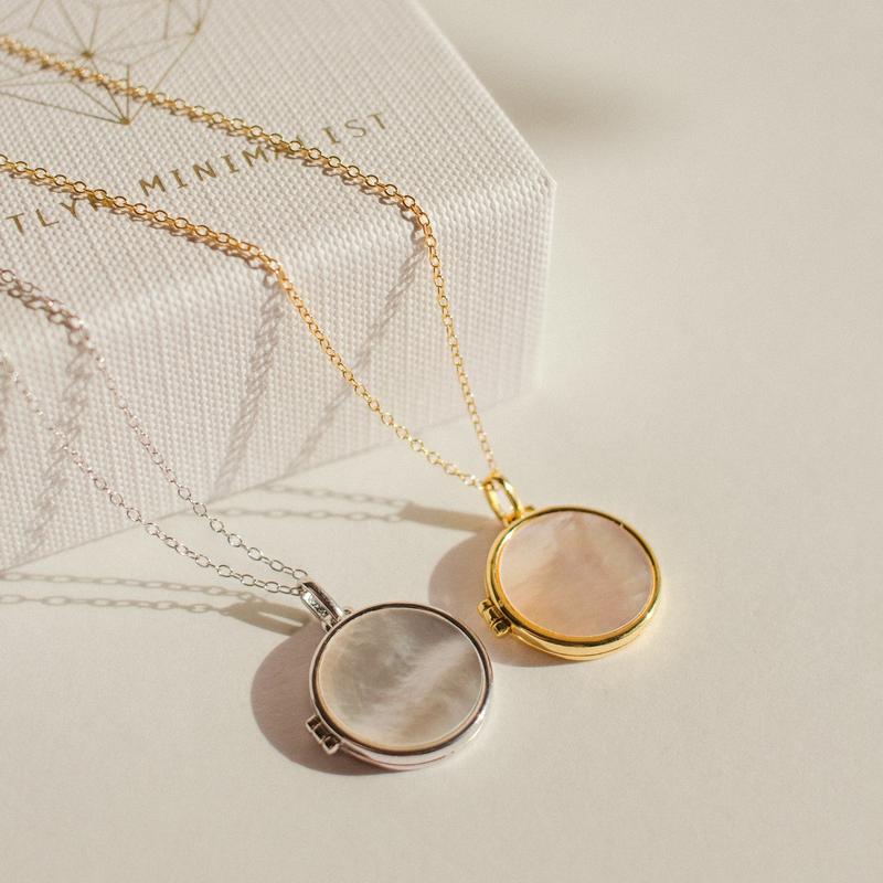 5. Pearl Disc Locket Necklace by Caitlyn Minimalist