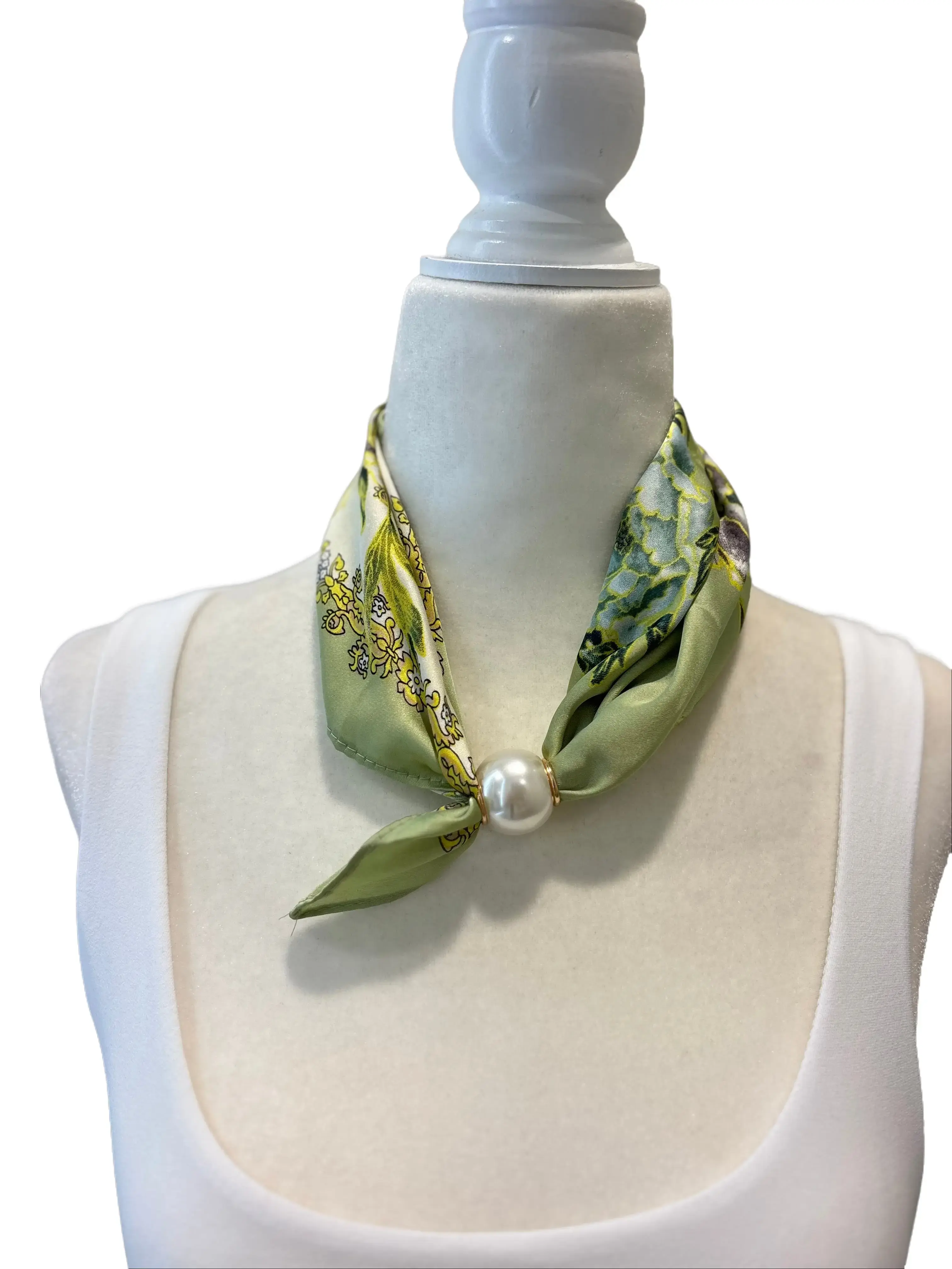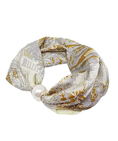 This scarf necklace features a soft floral print paired with a pearl magnet closure that creates an easy, polished finish. The lightweight fabric drapes comfortably around the neck while the pearl detail adds a refined focal point without feeling heavy. Simple to style and effortless to wear, it’s a versatile accessory that elevates everyday outfits and adds a touch of charm to dresses or tops.