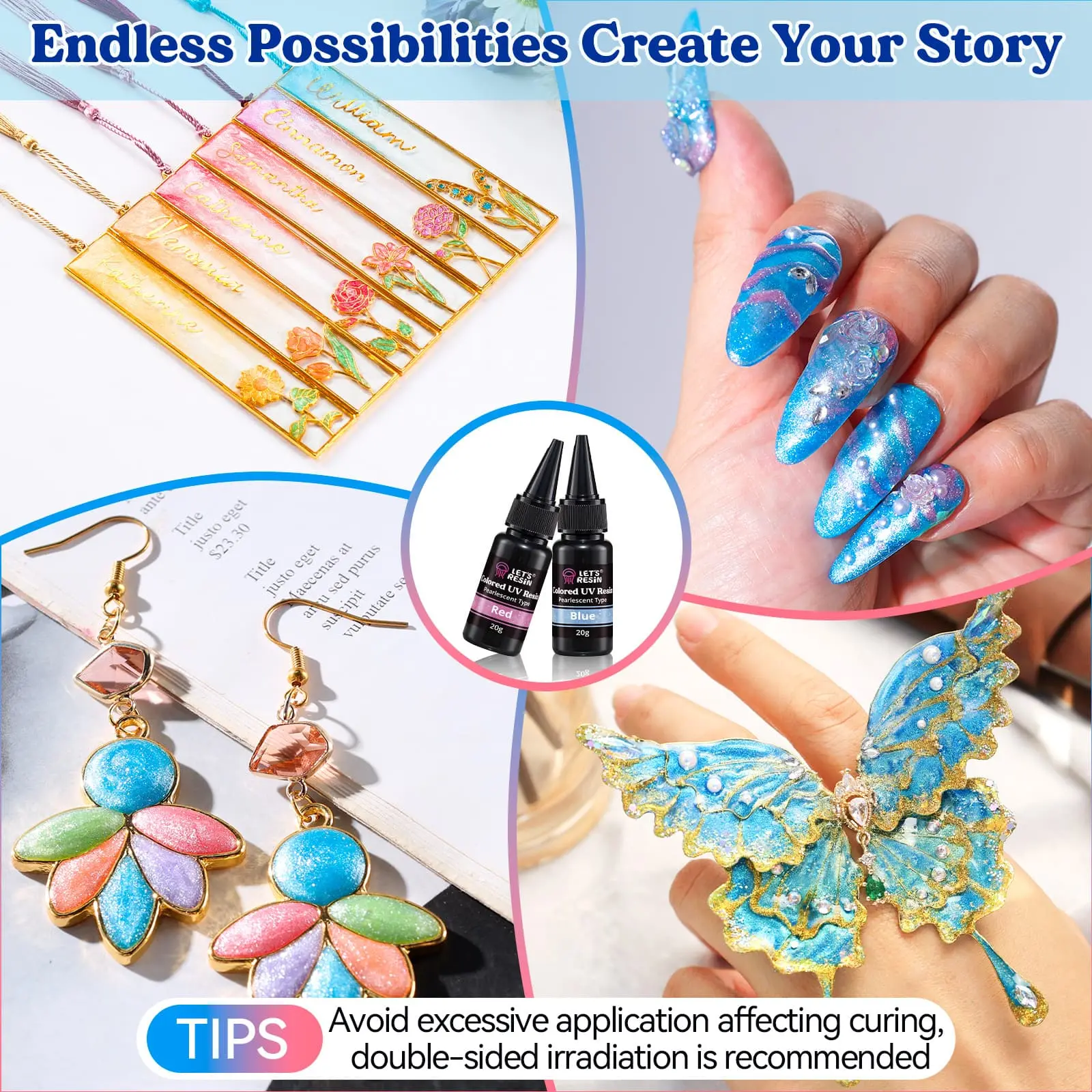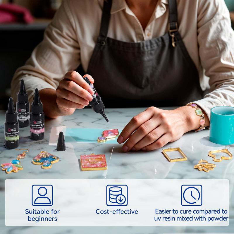 ·Versatile for All Creators: Ideal for resin craft enthusiasts, DIY beginners, nail art lovers, and jewelry makers. Whether adding shimmery details to resin pieces, decorating nails, or crafting unique jewelry, these UV resins simplify the creative process. Even newcomers with zero experience can achieve professional-looking results effortlessly.