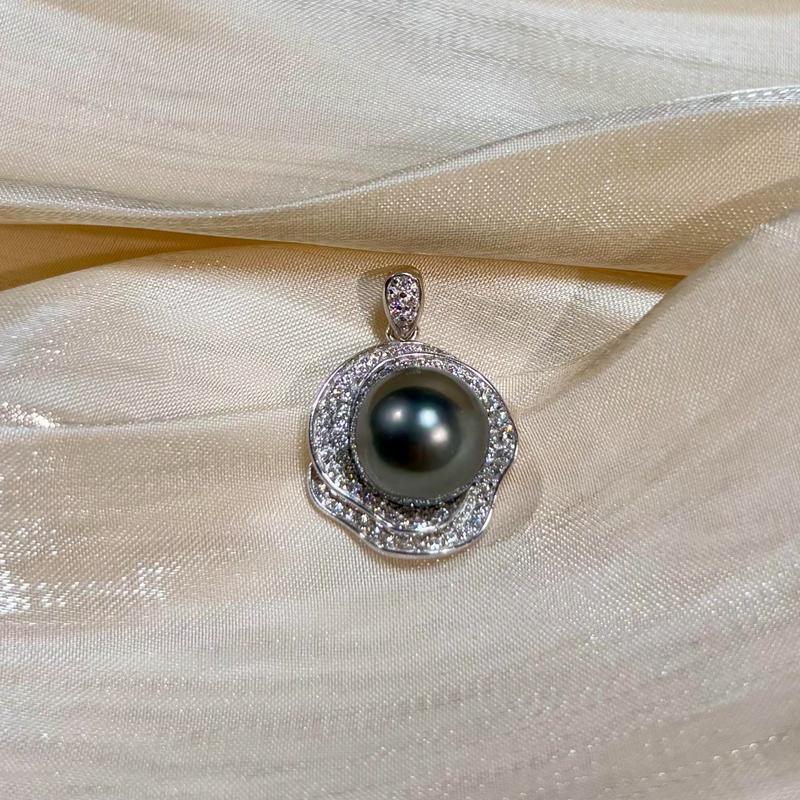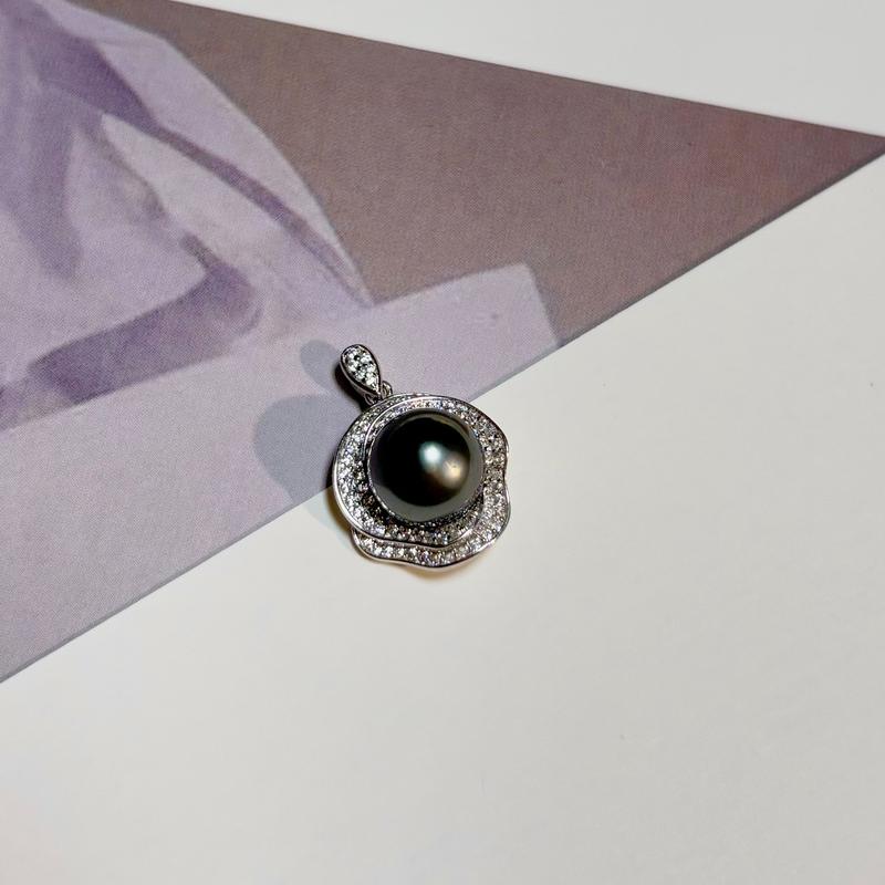 PEARLISM Shiny flower pearl pendant.Classic elegant design jewelry.Seawater Tahitian Black pearl pendant.Round pearl necklace pendant.Pearl jewelry.Pearl pendant.Gift for women.Christmas gift.Without chain-(9-10mm)-JSBP001