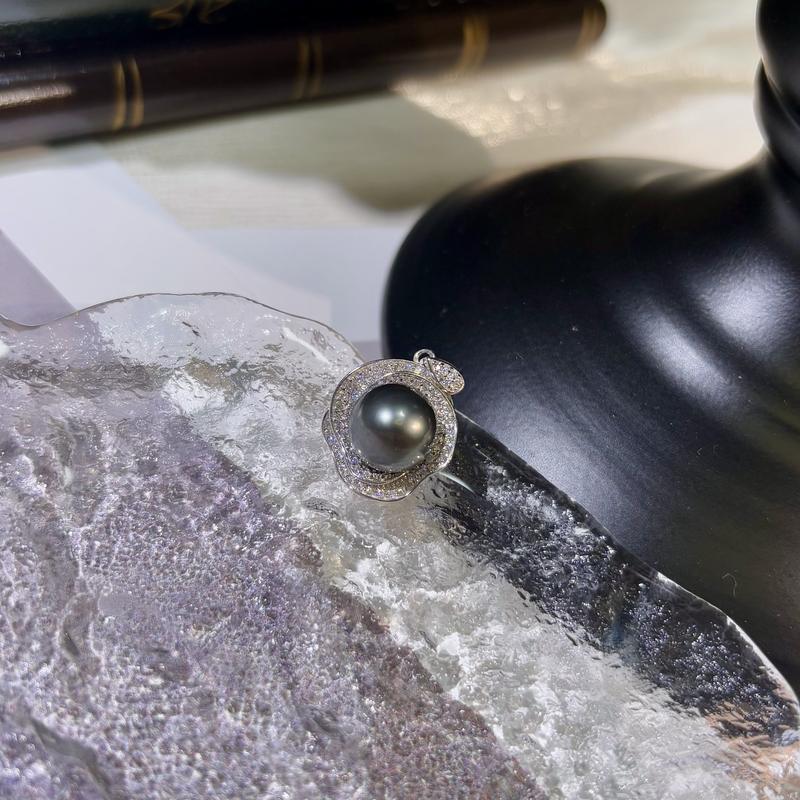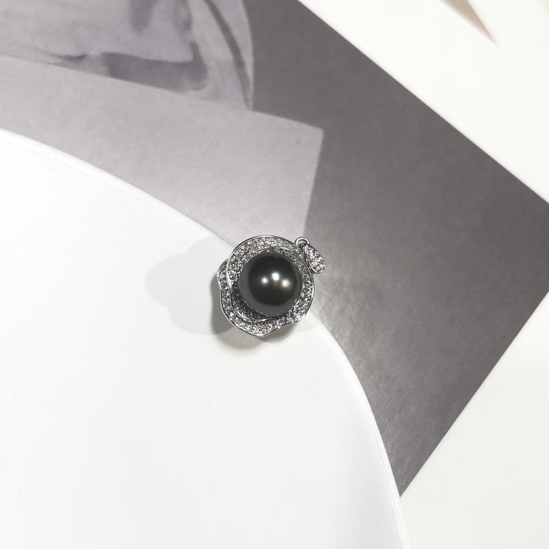 5. PEARLISM Shiny flower pearl pendant.Classic elegant design jewelry.Seawater Tahitian Black pearl pendant.Round pearl necklace pendant.Pearl jewelry.Pearl pendant.Gift for women.Christmas gift.Without chain-(9-10mm)-JSBP001